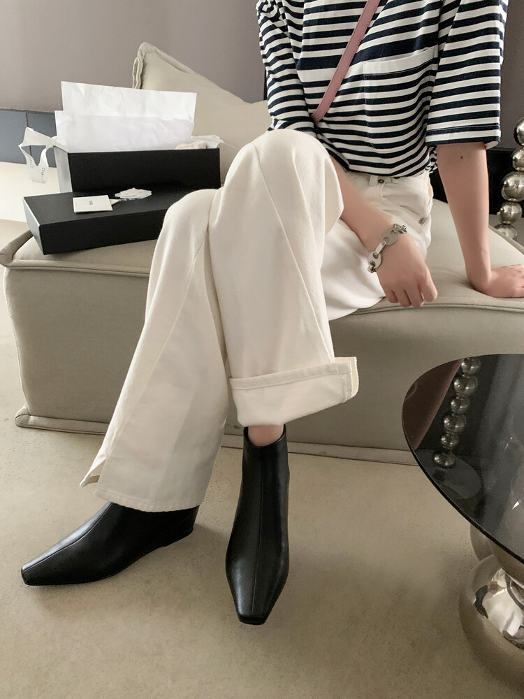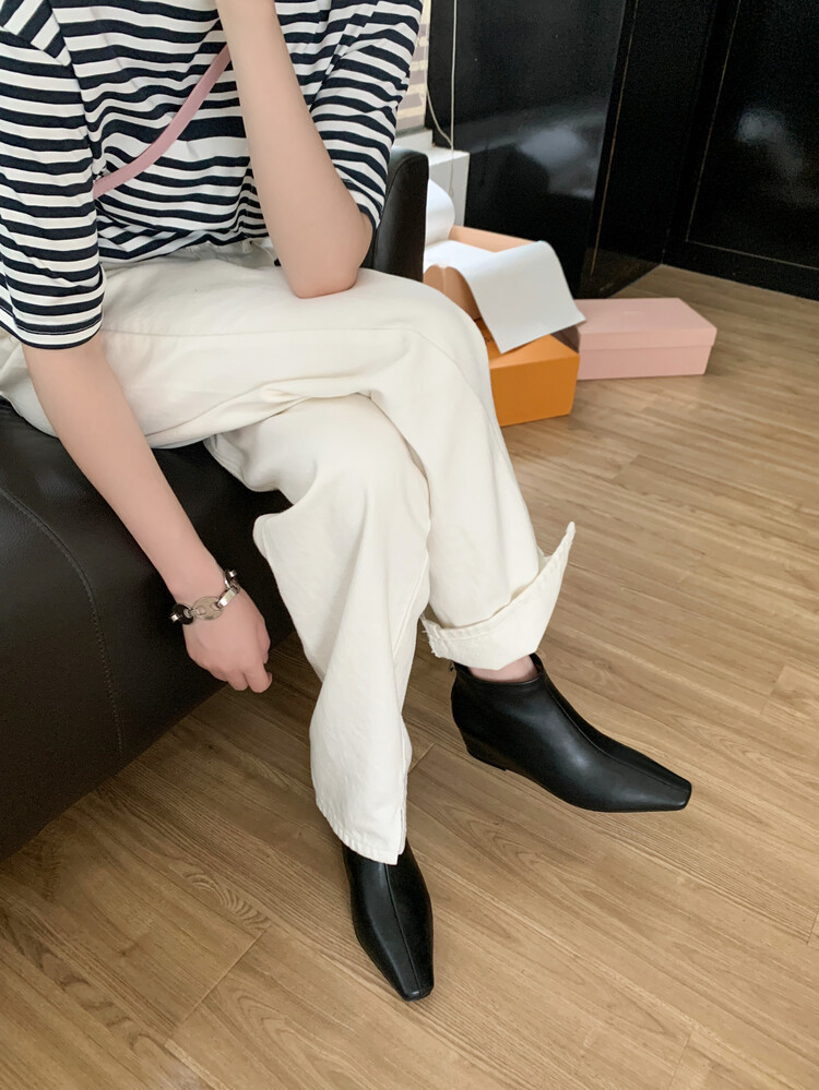 弹力短靴女瘦瘦靴子秋冬新款小方头后拉链平跟韩版裸靴女单靴短靴