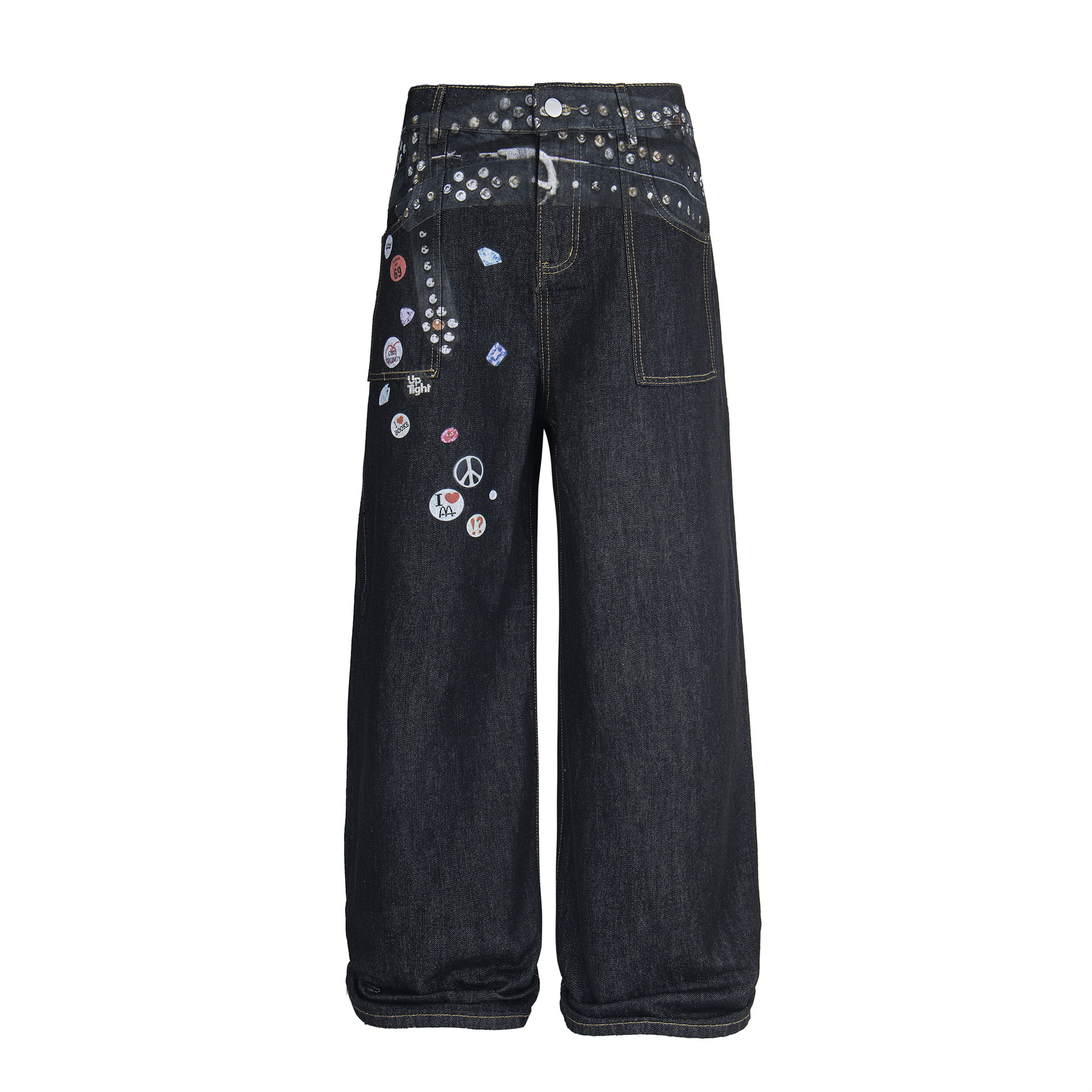 縦馳衣社アメリカレトロ漫画ステッカープリントジーンズの新デザイン感がゆったりしています。