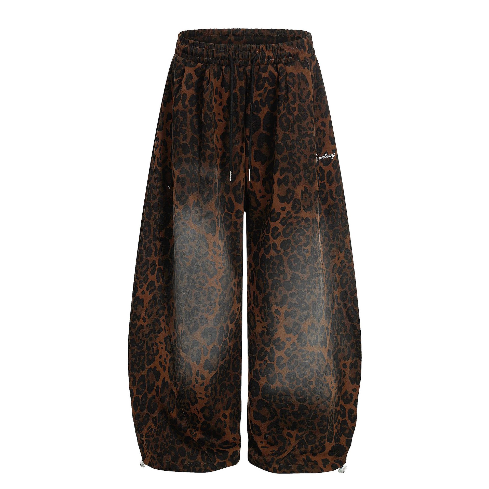 纵驰衣社美式复古豹纹弯刀休闲裤男女款秋季新款宽松阔腿百搭长裤