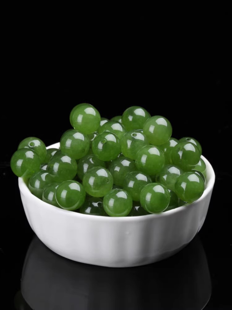 碧玉ホウレンソウ緑玉髄散珠円珠diy手織りブレスレットネックレス半製品玉珠