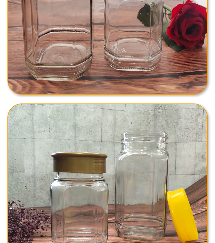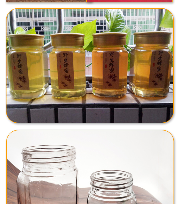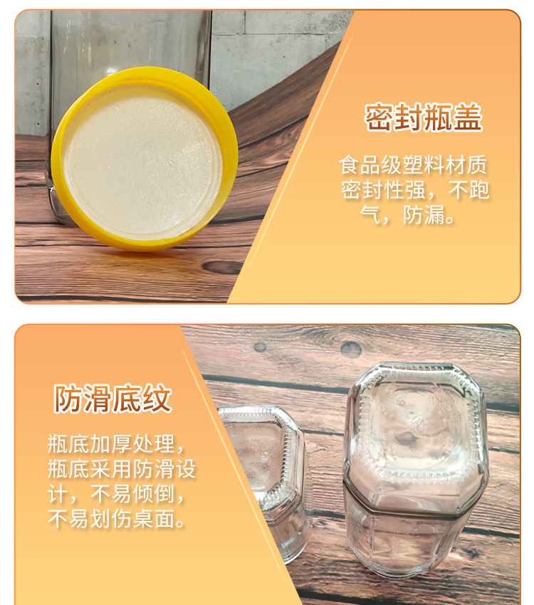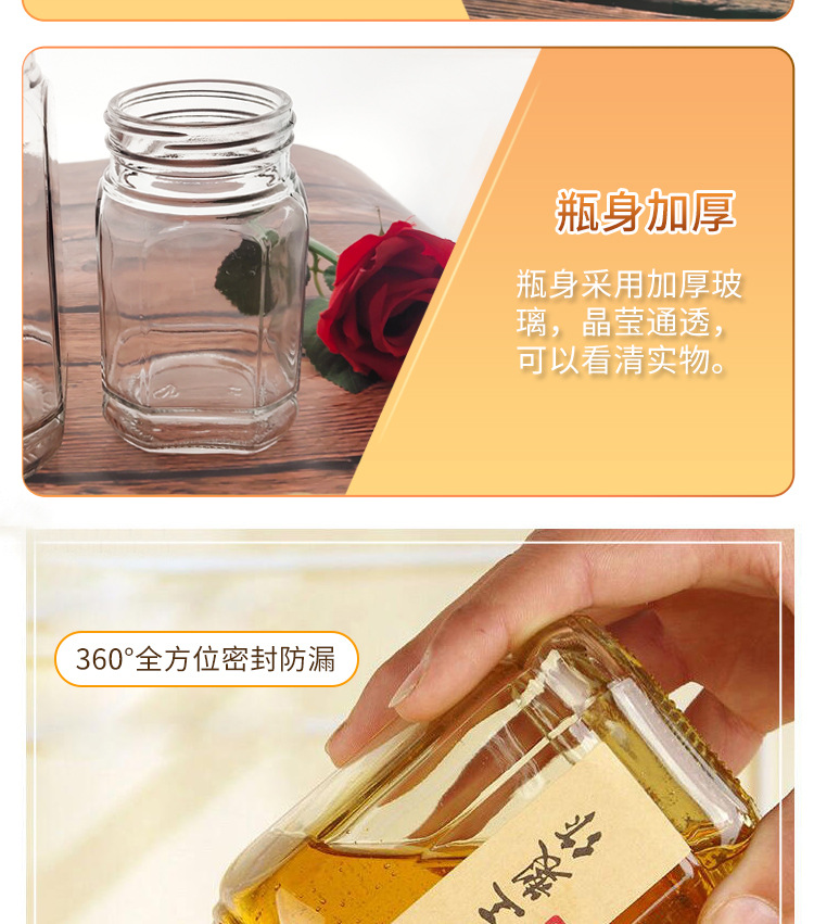 メーカー卸売り六稜蜂蜜ガラス缶味噌汁瓶高級蜂蜜瓶六角ジャム瓶缶瓶ガラス瓶