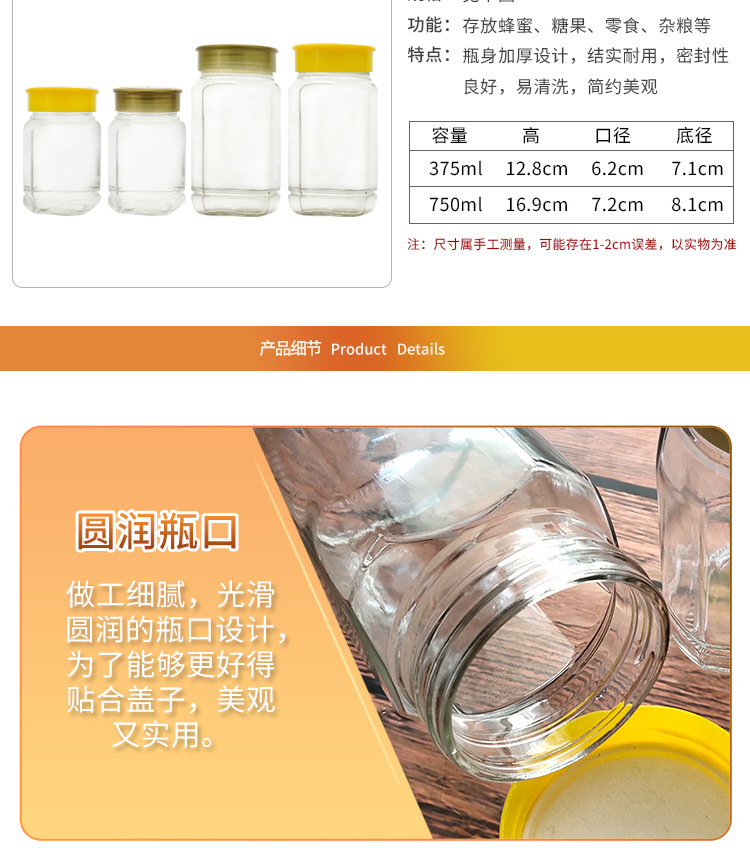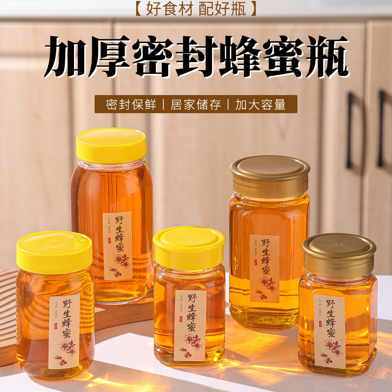 厂家批发玻璃圆形蜂蜜蜂蜜瓶一斤密封罐二斤带盖空瓶加厚蜂蜜罐