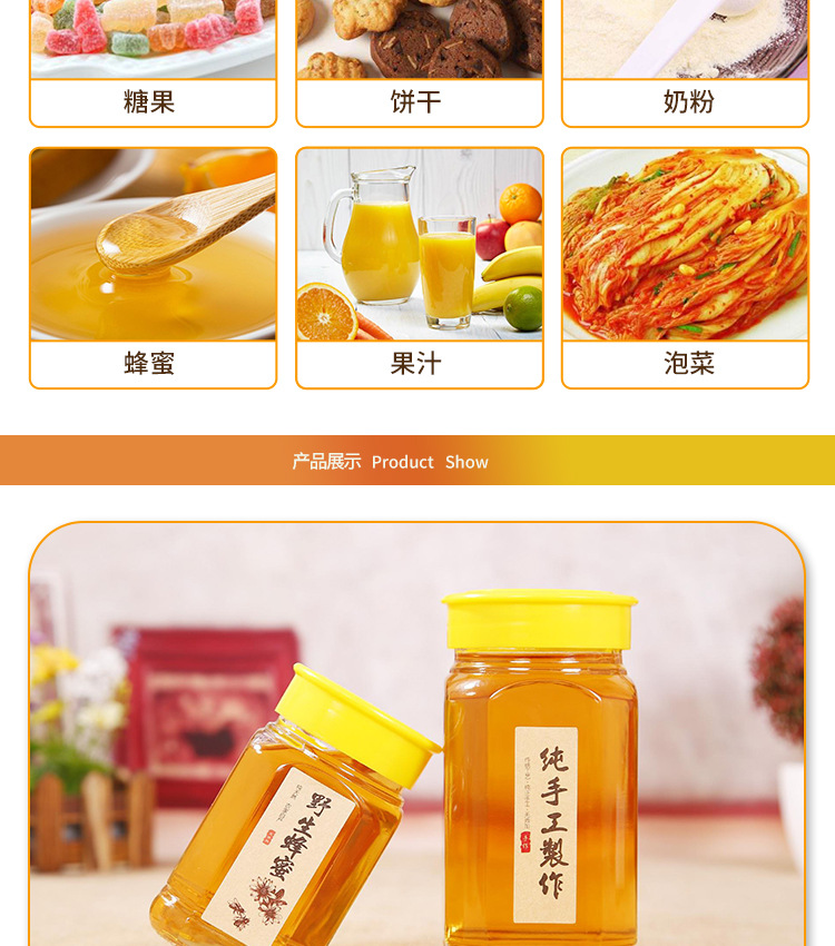 食品密封储物蜂蜜酱菜方形柠檬膏透明玻璃瓶耐高温加厚厨房收纳杂