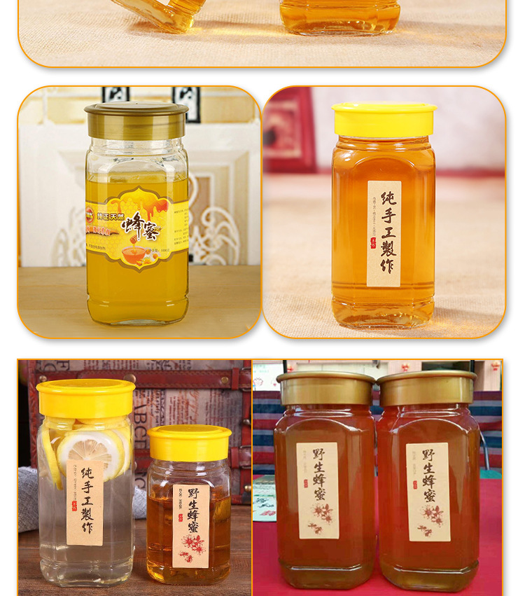 八角形蜂蜜ガラス瓶高級分入空瓶1斤入透明円形密封ジャム瓶缶瓶2斤入
