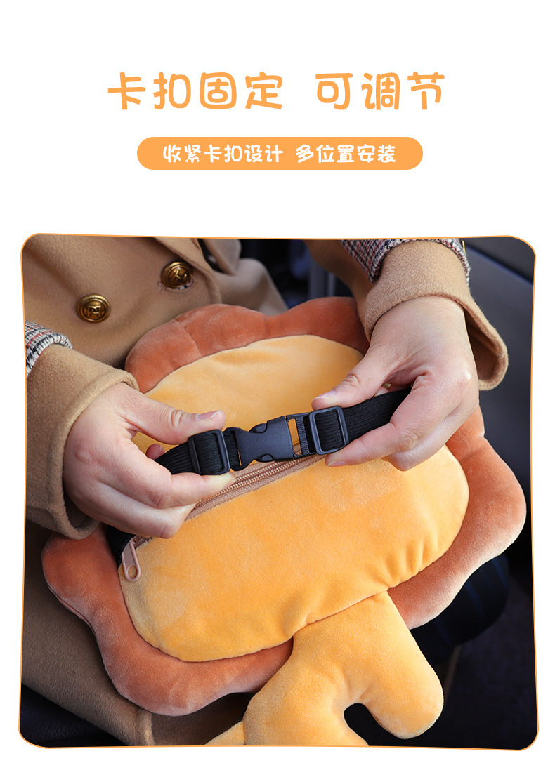 自動車シートベルトの肩掛けカバーのアイデアが可愛いです。首を絞めて固定器を調節します。子供が寝ます。