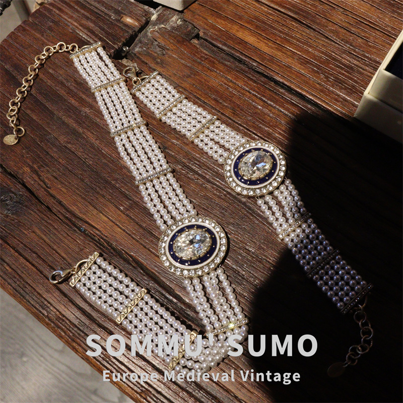 フランスPOGGI真珠多層水晶小米珠choker復刻品セットブレスレット指輪ネックレスイヤリング