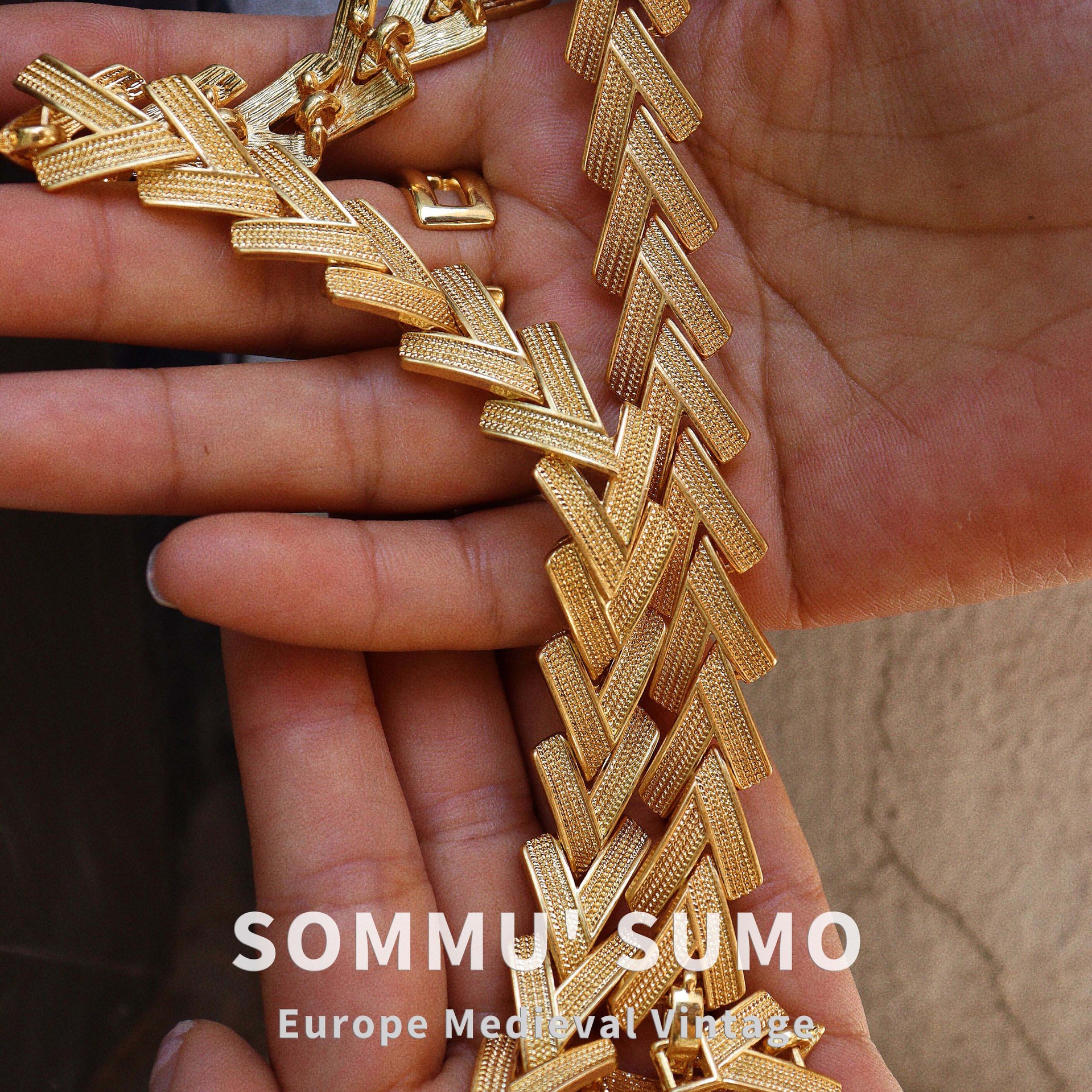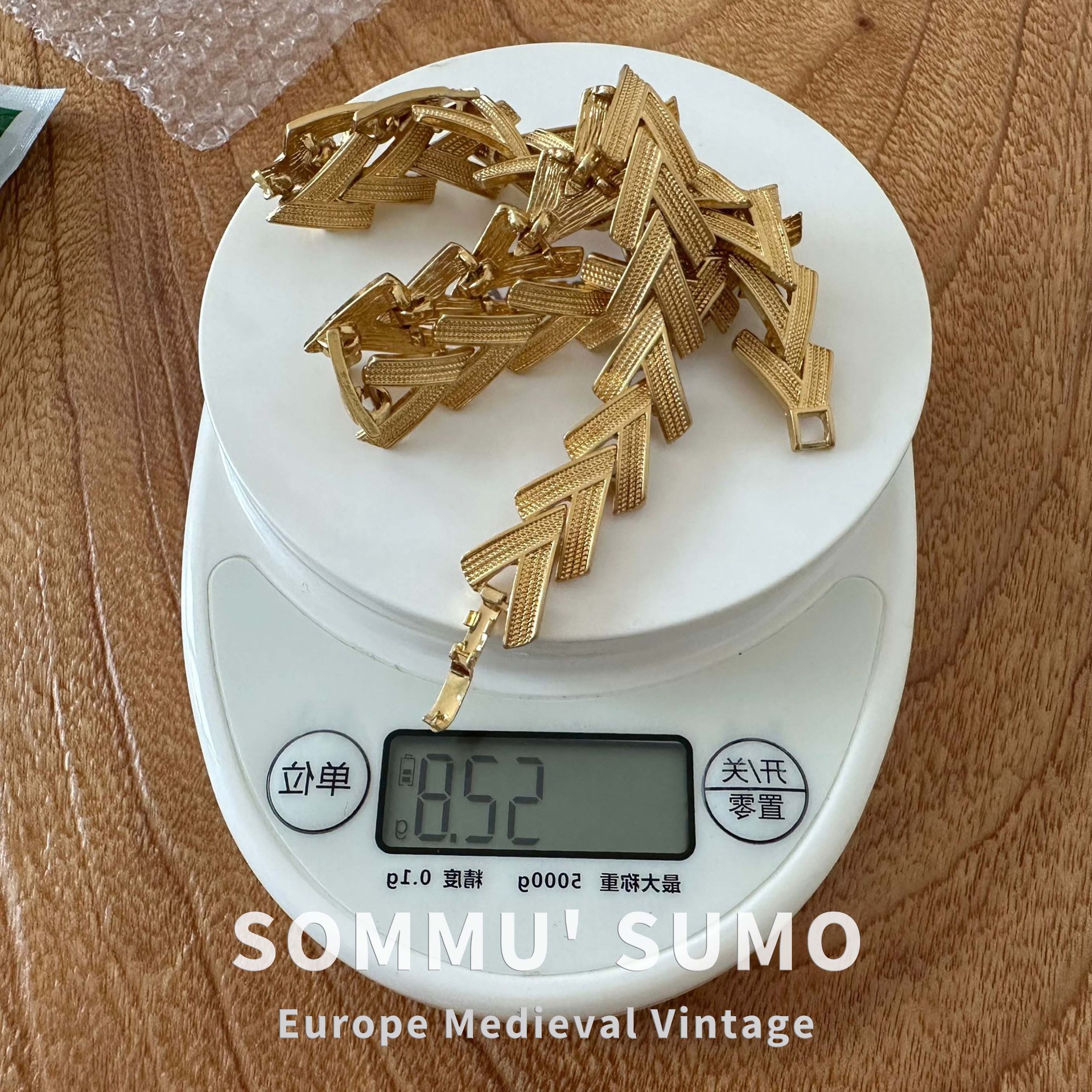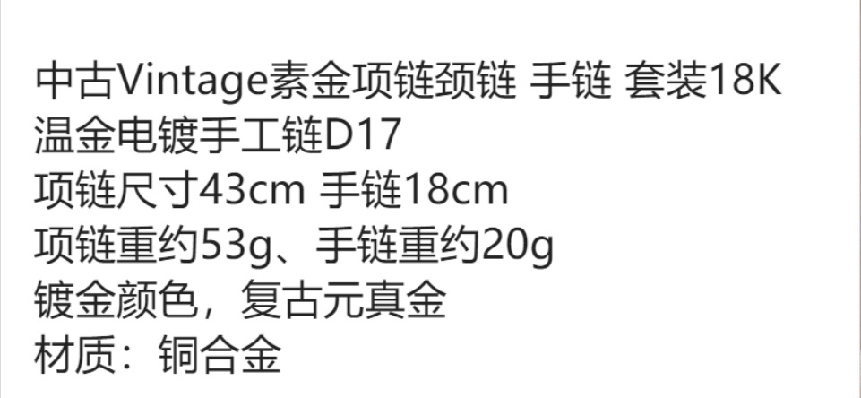 中古ヴィンテージゴールドネックレス首チェーンブレスレットセット18k温金メッキ手作りチェーンd17重工レトロ