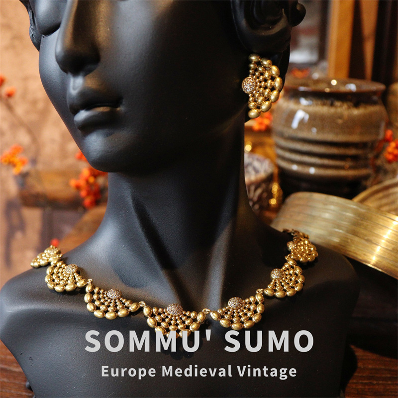Vintage中古项链耳环套装复刻珍珠短款手链铜镀真金青岛工厂 直播