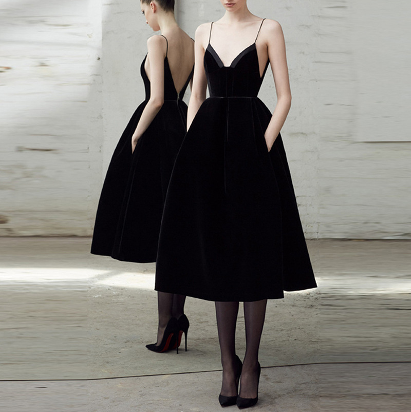 小さなドレスのスカートのベルベットの贅沢な宴会パーティーのドレスは日常的に黒い欧米の速達ワンピースを着ることができる