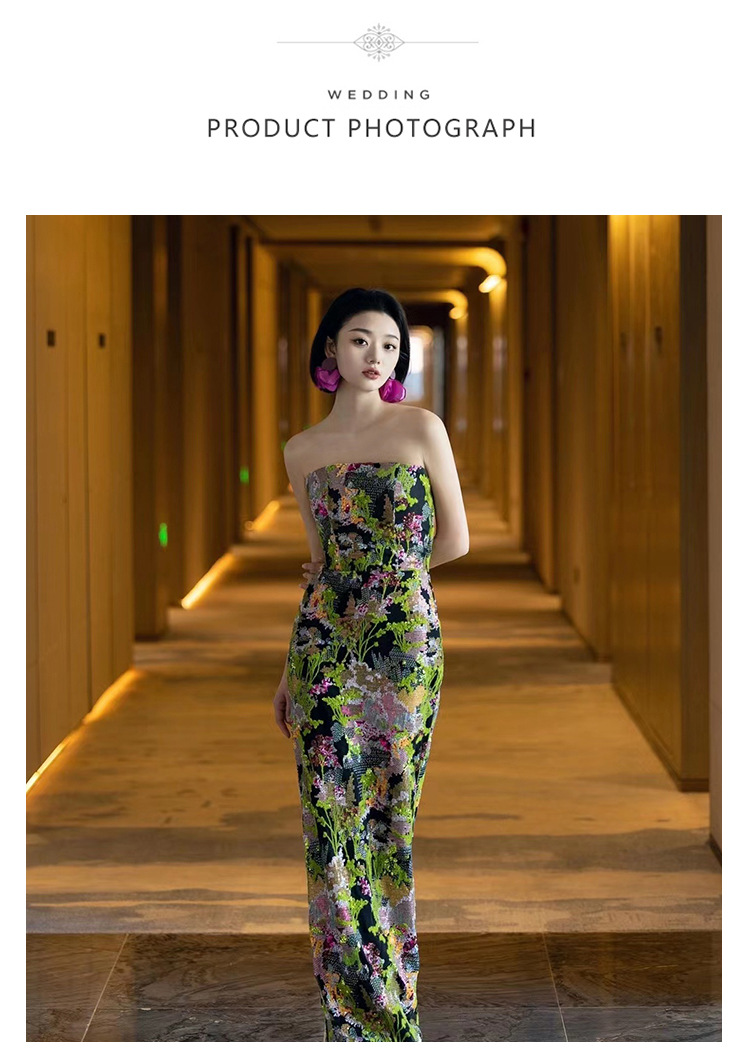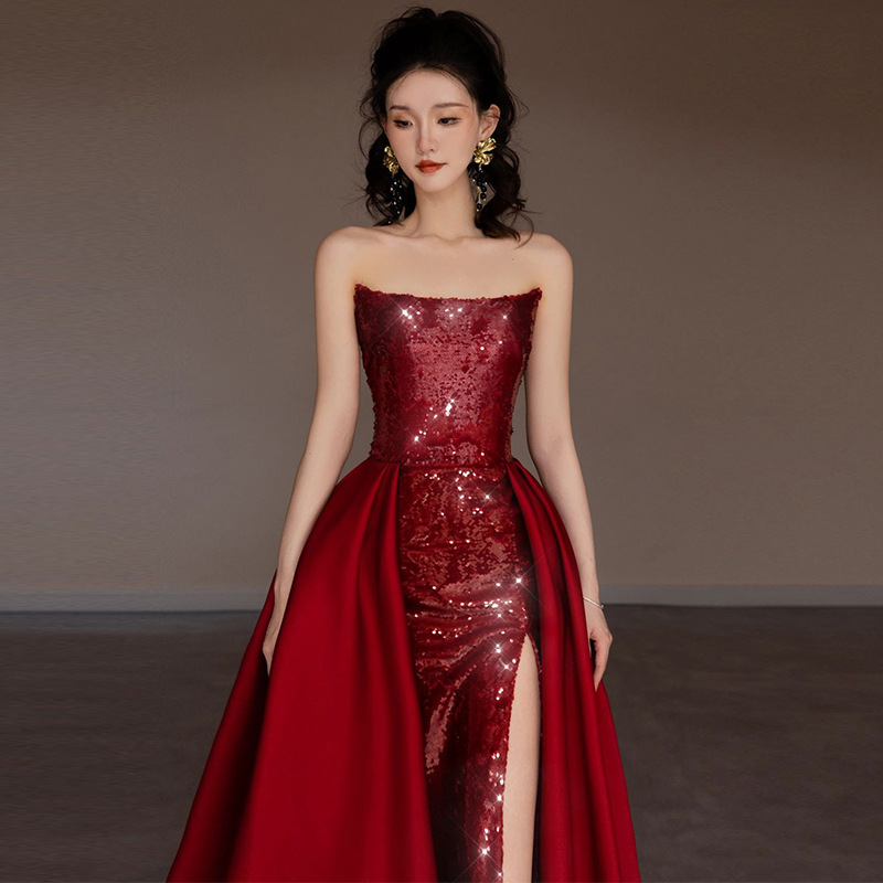 チューブトップトレーリングドレス 2025 新しいホストロングインターネットセレブ同じスタイル社交界のオーラ誕生日パーティーイブニングドレス
