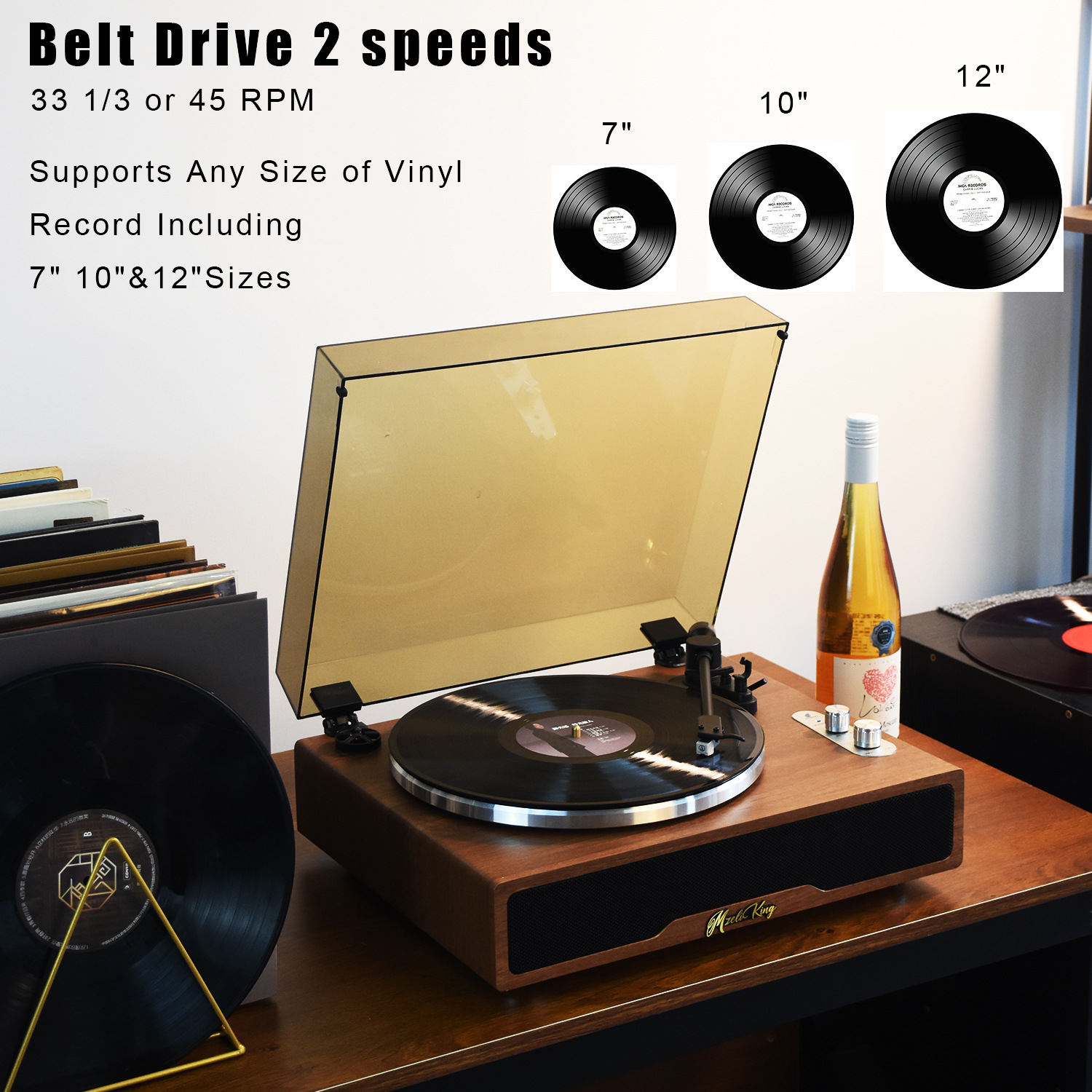 ビニールレコードプレーヤー、蓄音機、デュアルスピーカー内蔵、デスクトップアクリルダストカバー、Bluetooth接続