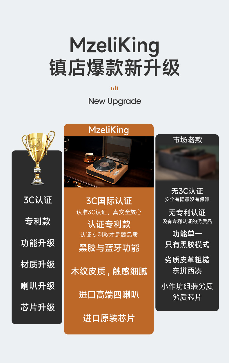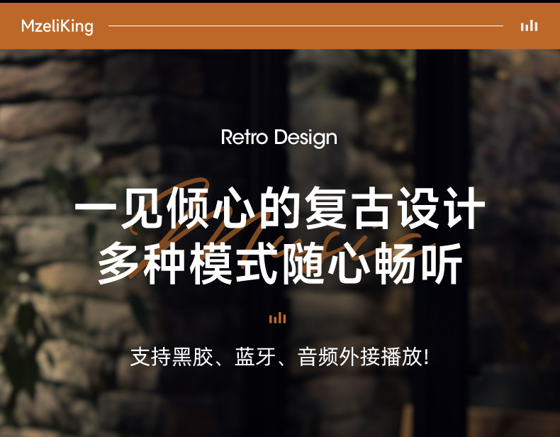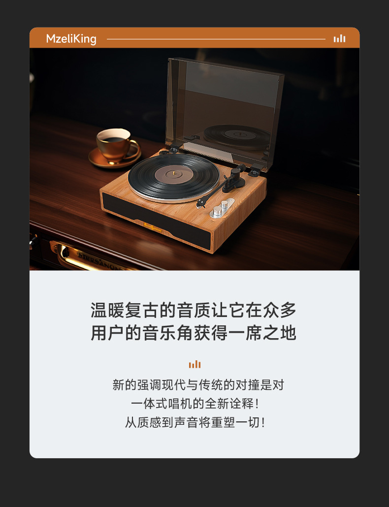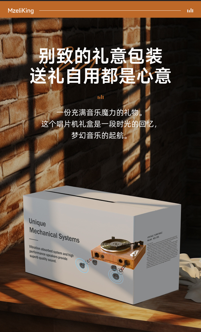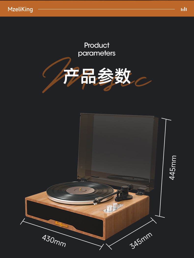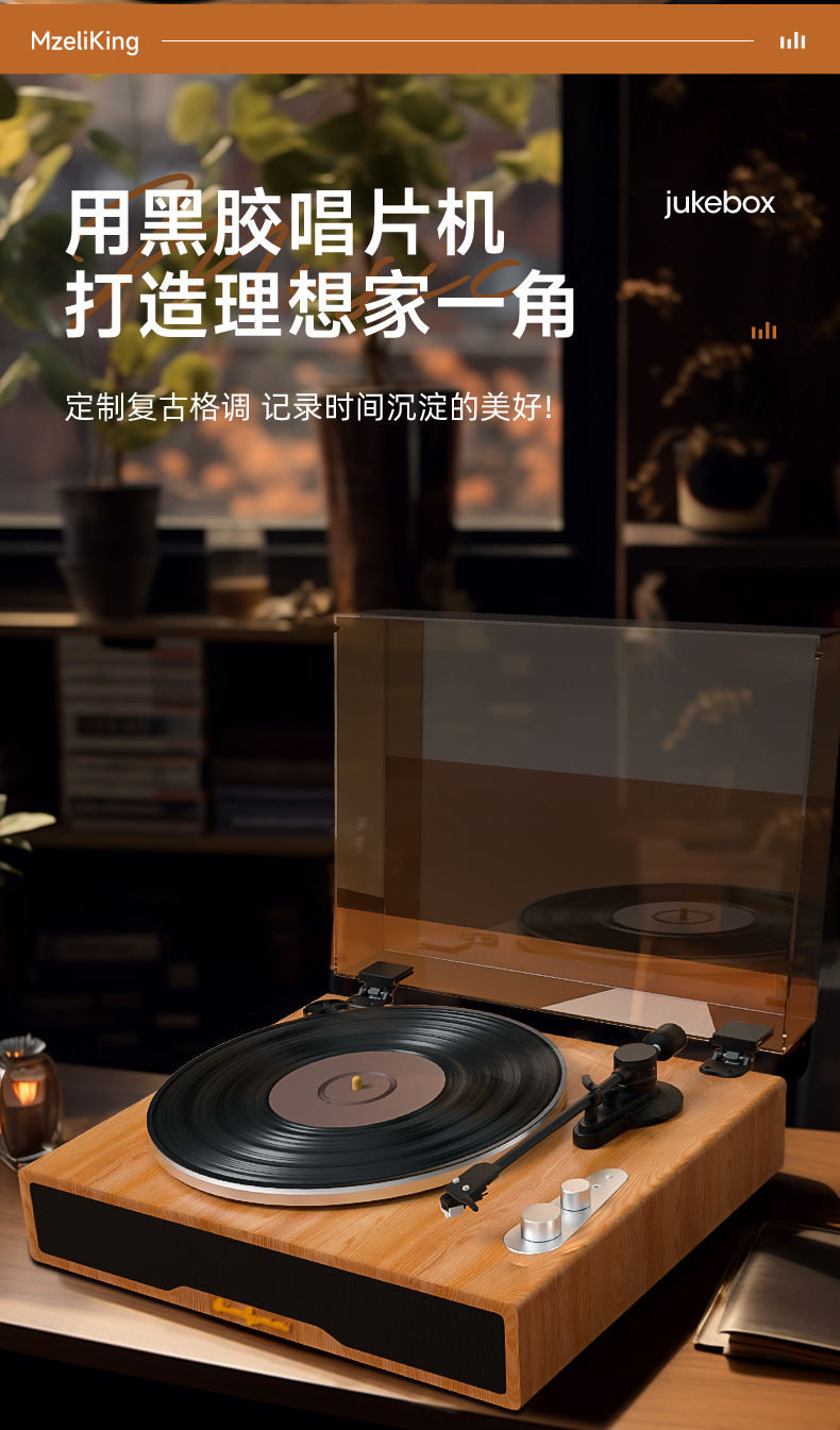Mzeliking黑胶唱片机复古留声机音响一体式动磁唱机蓝牙音箱礼物