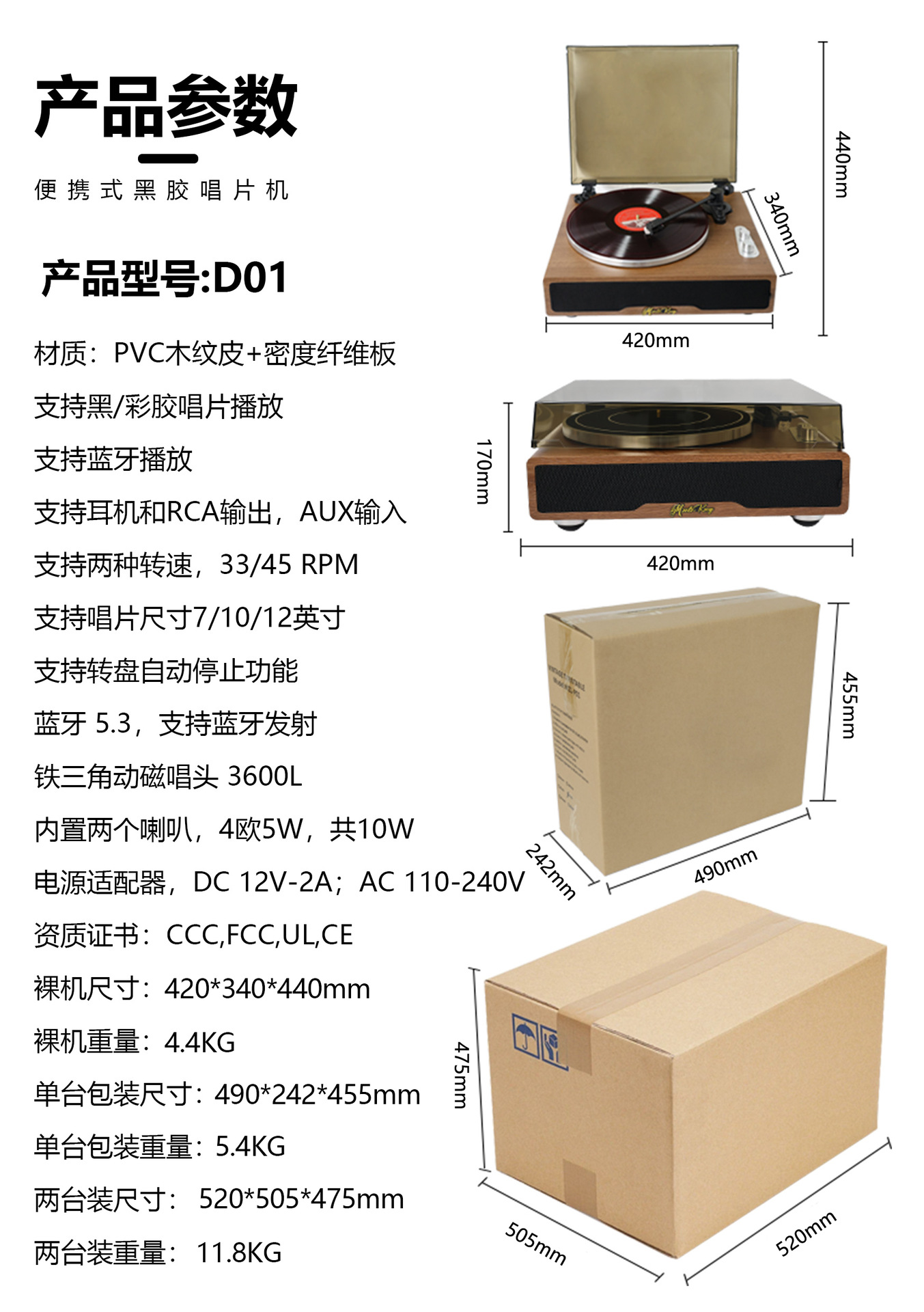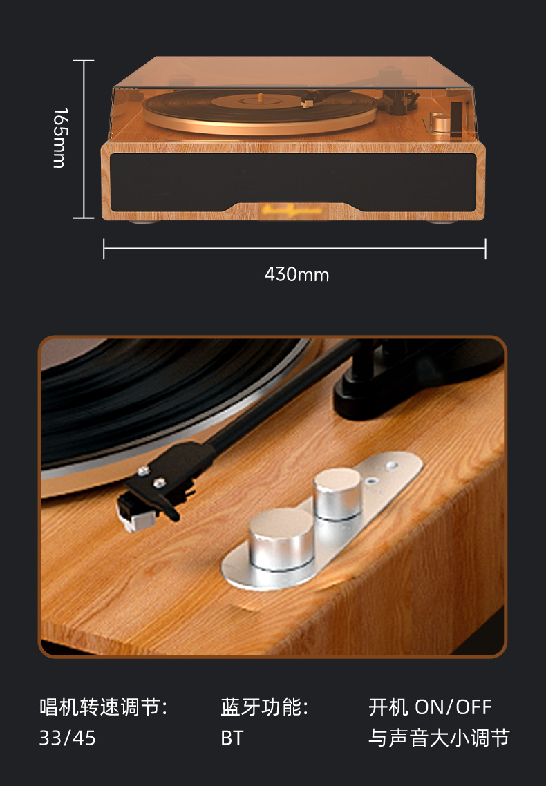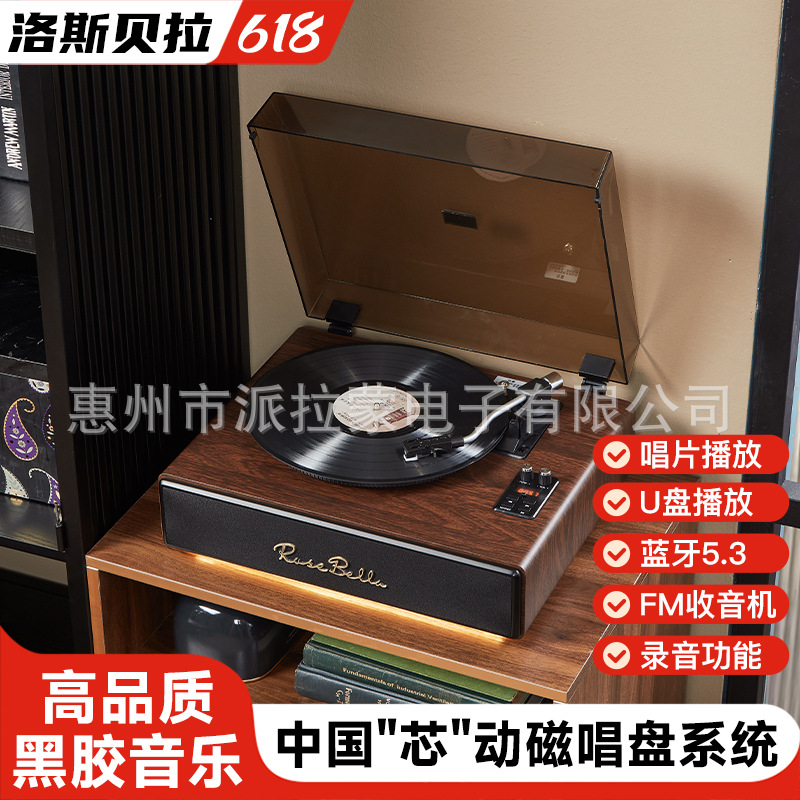 跨境复古黑胶唱片机留声机分体式无源蓝牙HIFI音响家用送礼LP唱机