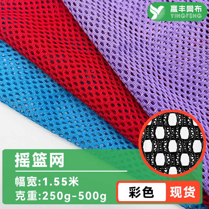 ポリエステル製クレードルネット、オフィスチェアの背もたれ生地、バッグ、ハンドバッグ、ベビーカー、ハンモック、ビーチチェア、経編ネット生地