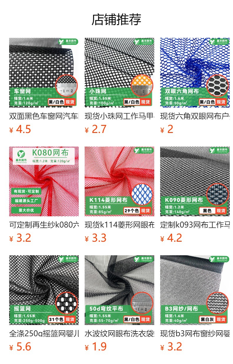 现货小孔方格网户外帐篷蚊帐布纱窗软网纱面料鞋材箱包经编网眼布