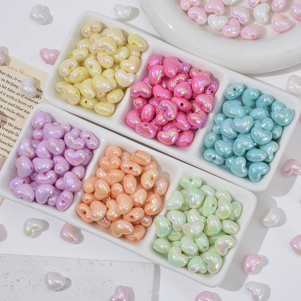 亚克力奶油实色马贝直孔心形串珠爱心散珠 diy手机链手链饰品配件