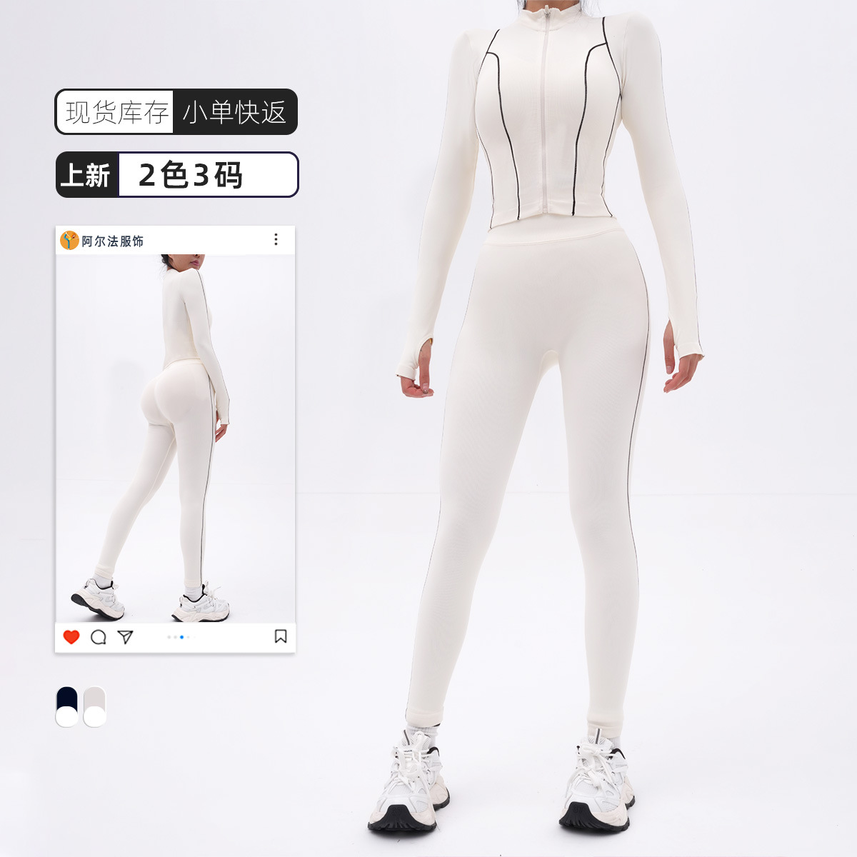 跨境欧瑜伽服长袖户外运动上衣健身服女秋冬速干衣长袖套装