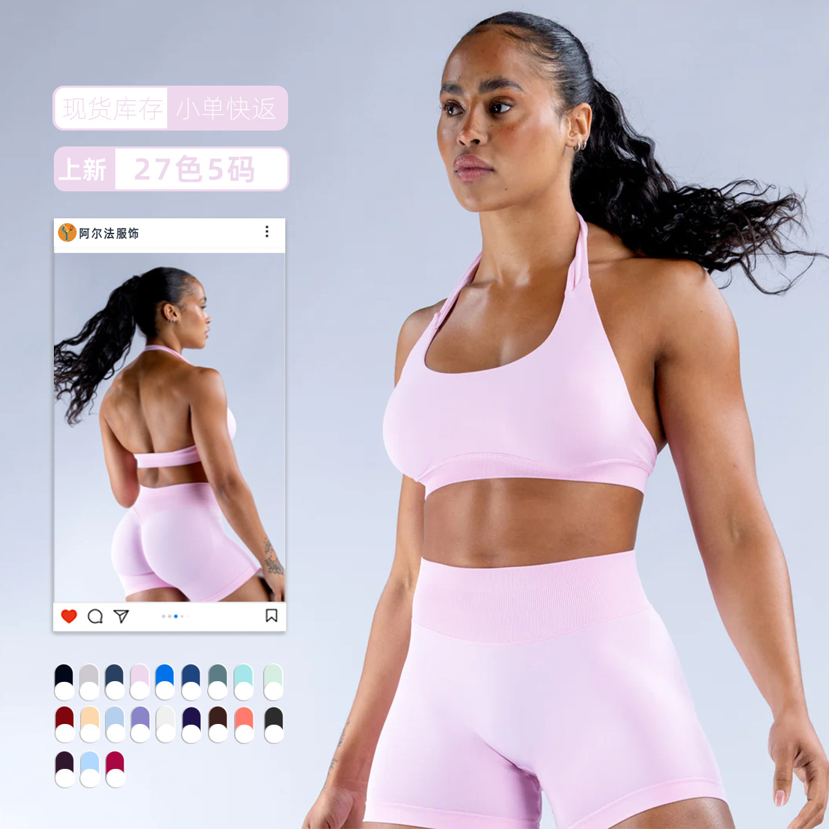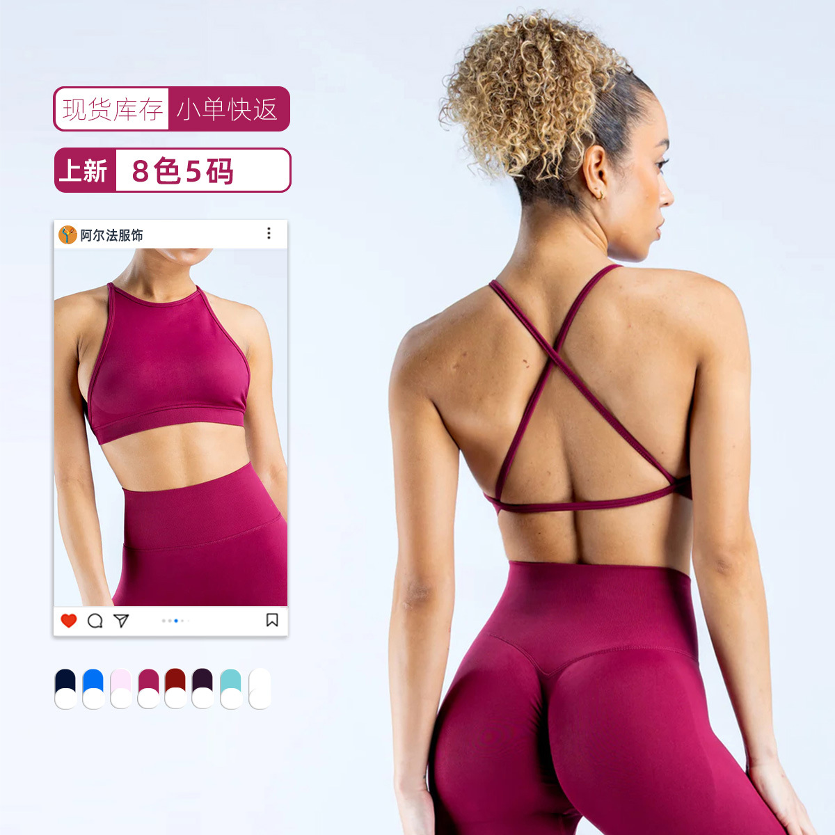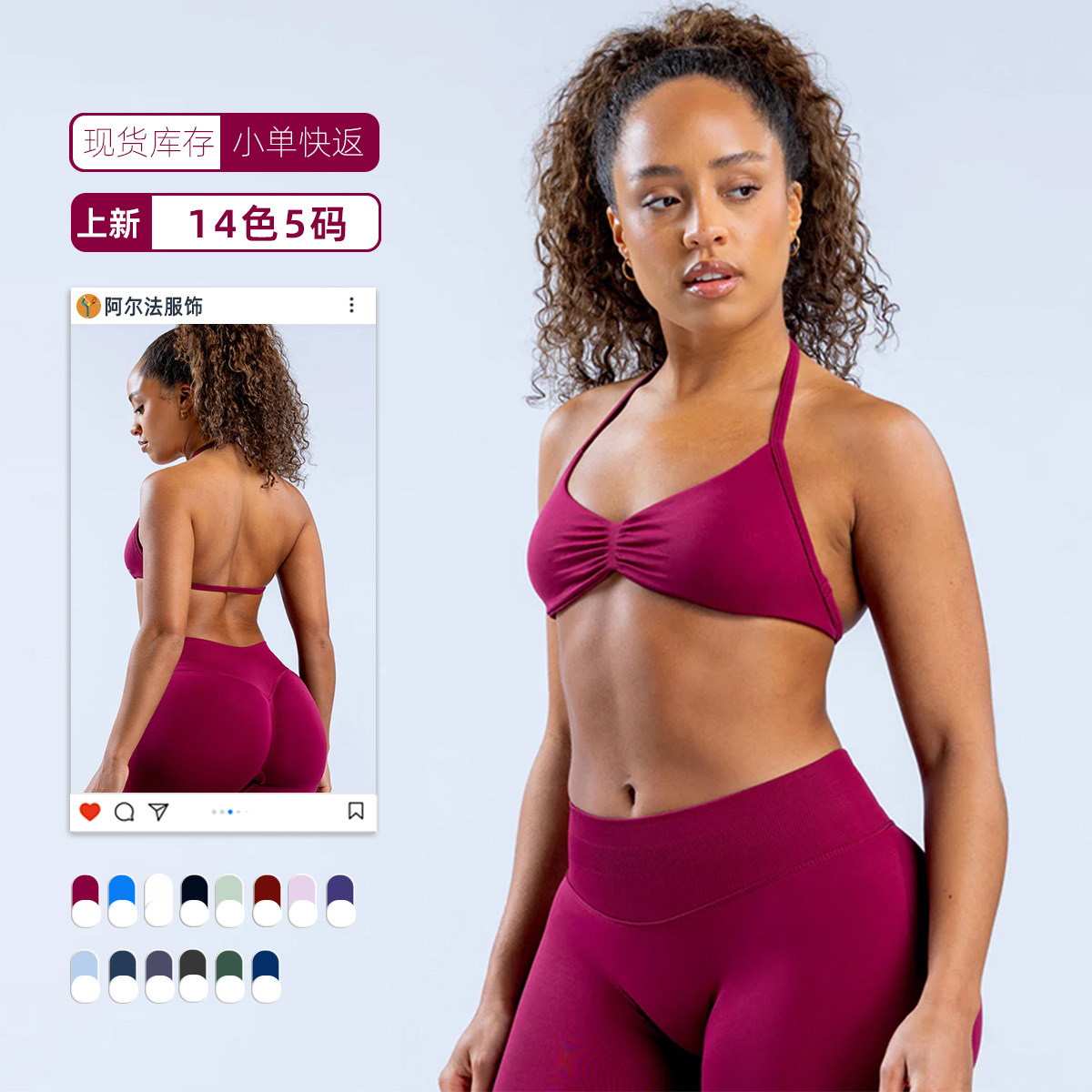 アマゾン高弾超細艶消しナイロン首美背シームレス運動ブラジャー露出防振ヨガブラジャー