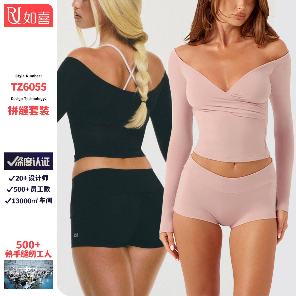 欧美跨境新款撞色瑜伽服套装女休闲上衣高腰收腹瑜伽健身运动套装