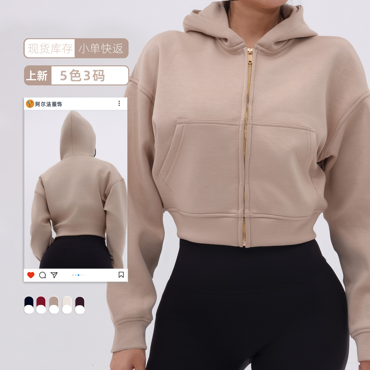 跨境秋冬新款连帽开衫拉链瑜伽服卫衣女运动户外跑步健身瑜伽外套