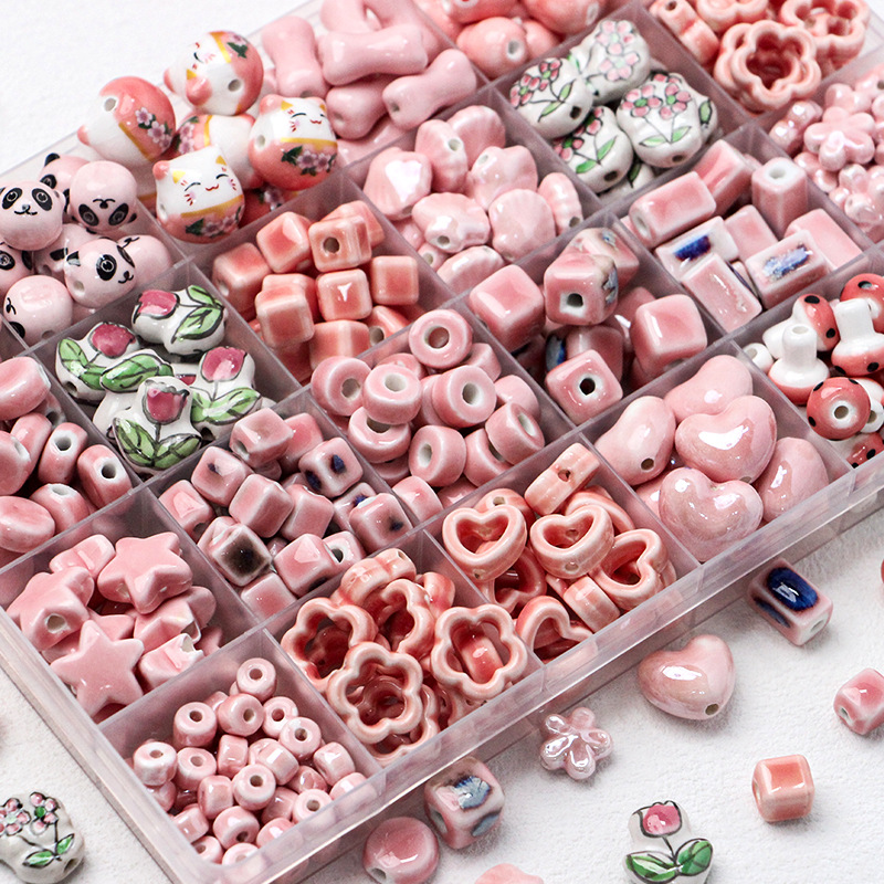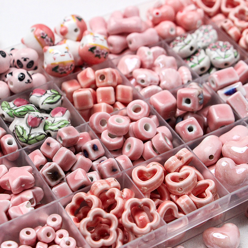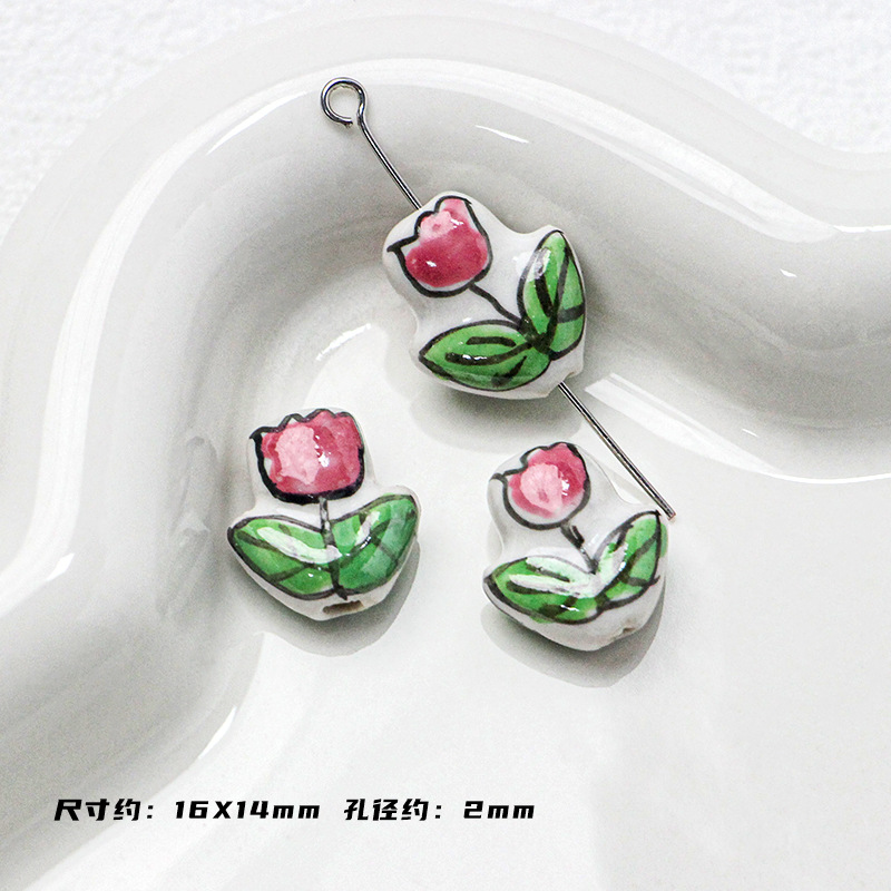 【桃粉】陶磁器創意デザイン散珠カボチャチューリップDIYビーズネックレスブレスレット手作りアクセサリー