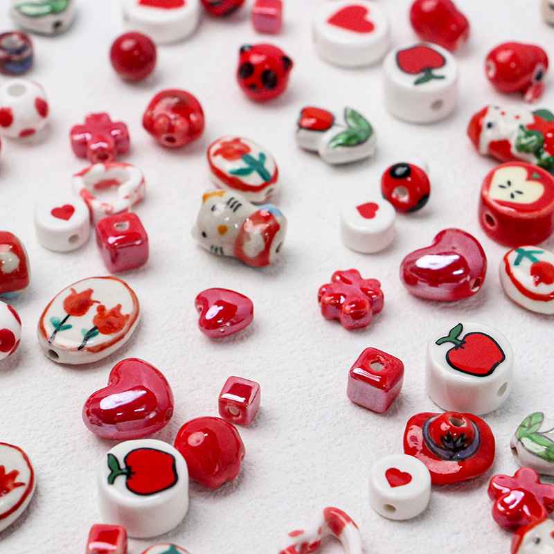 【火の赤い系】熱烈な火の赤い陶磁器の愛のDIYの手作りの数珠のブレスレットのネックレスのアクセサリーの部品