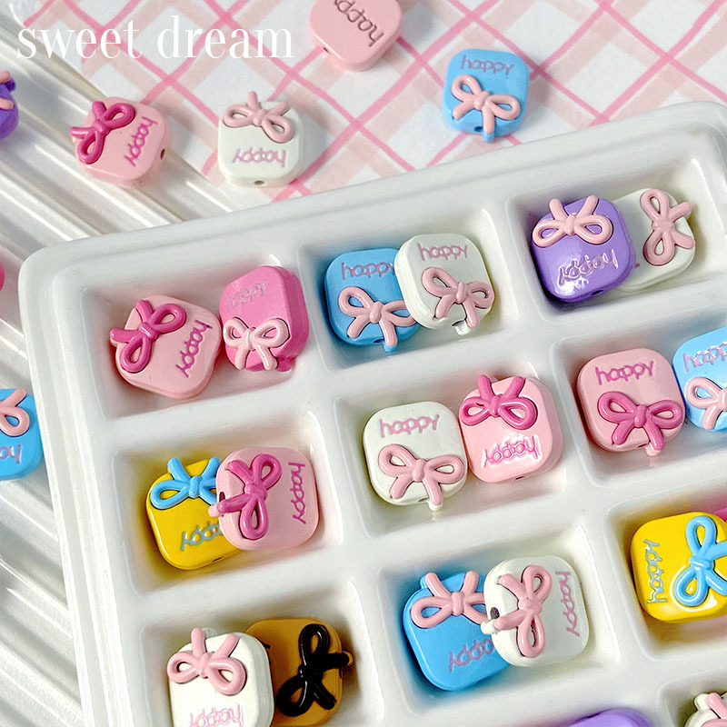 多巴胺色蝴蝶结字母礼物盒散珠diy手工项链耳饰手链挂件配件材料