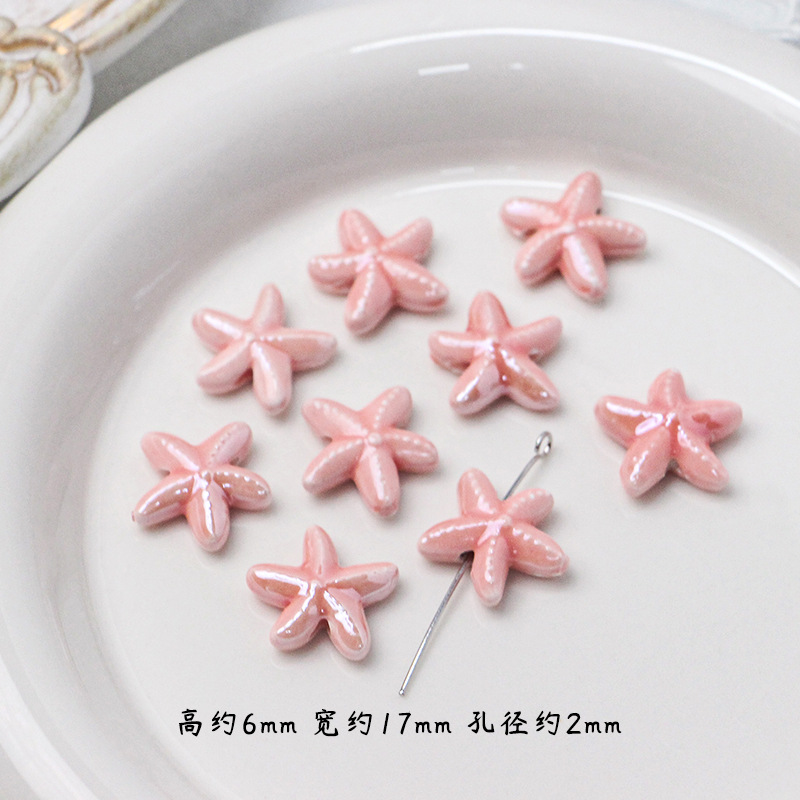 蓝色系陶瓷珠日系可爱贝壳爱心散珠diy手工饰品配件手链圆珠材料