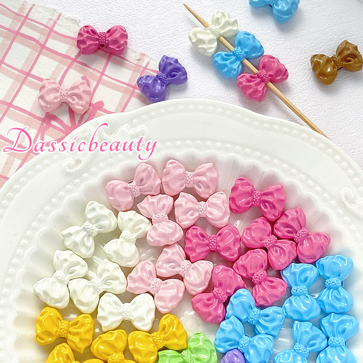 马卡龙褶皱立体蝴蝶结散珠diy串珠手链挂件手机链发饰饰品小配件