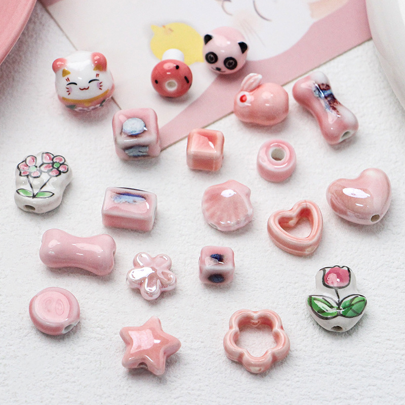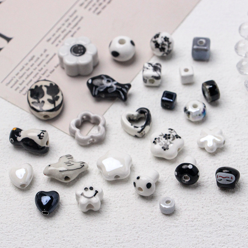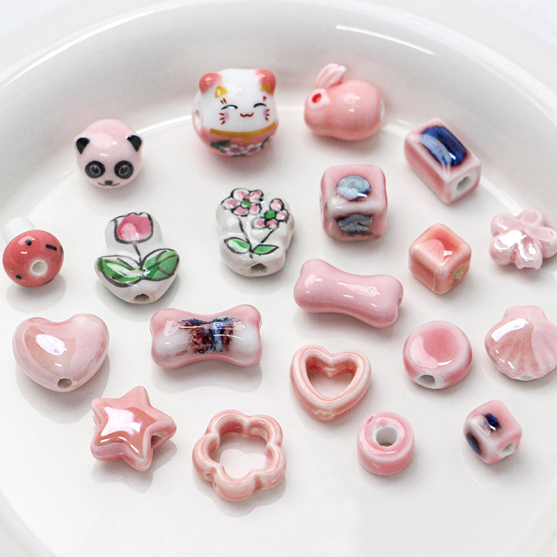 かわいい趣味の手描きビーズ陶磁器ハト星小魚花ブロックビーズDIY手作り材料