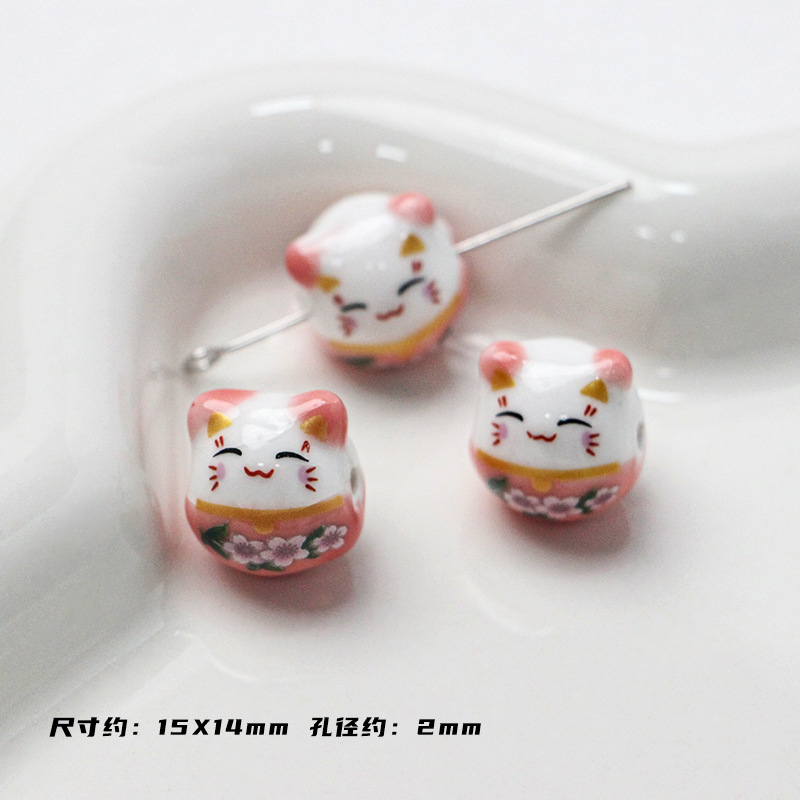 キラキラ猫の頭瑠璃ガラスビーズ直孔散珠手作りdiyビーズネックレスブレスレット耳飾り材料部品