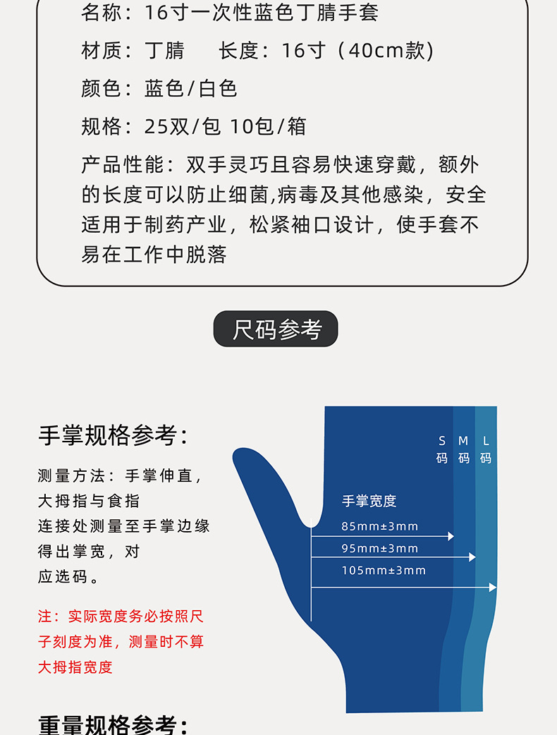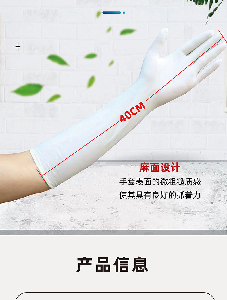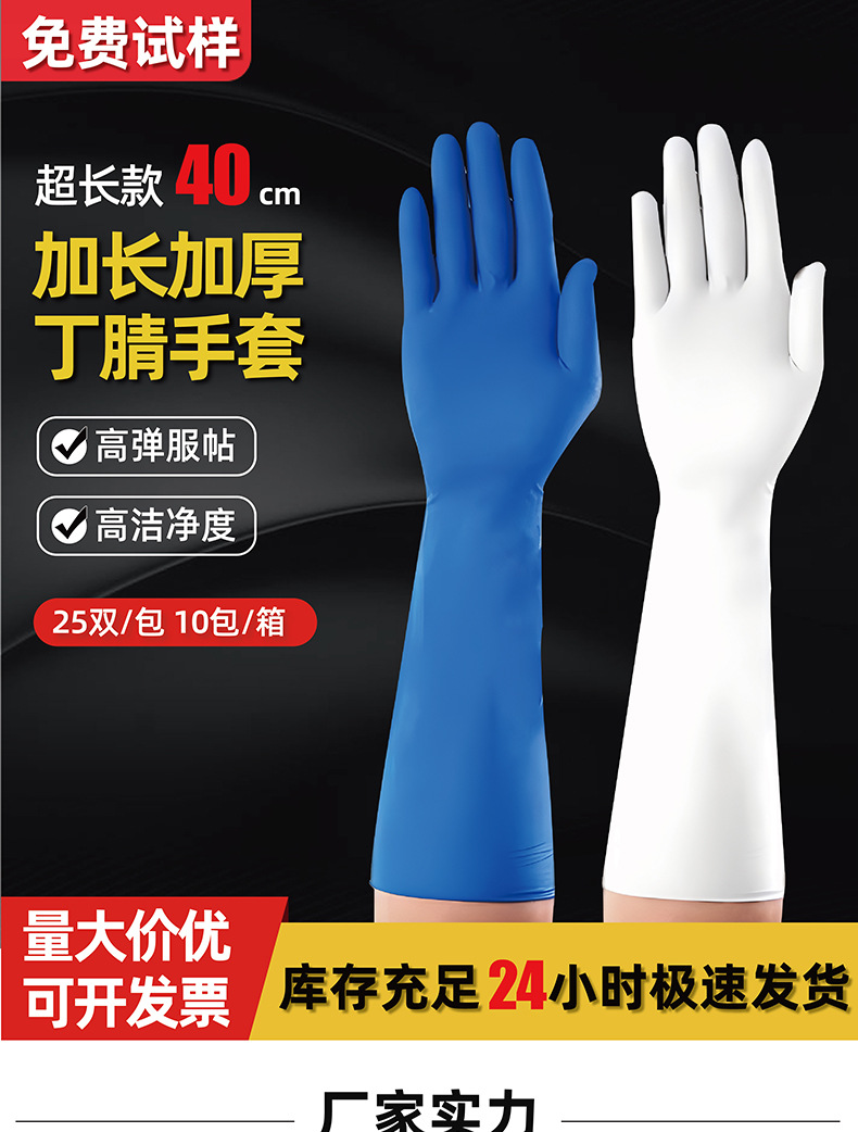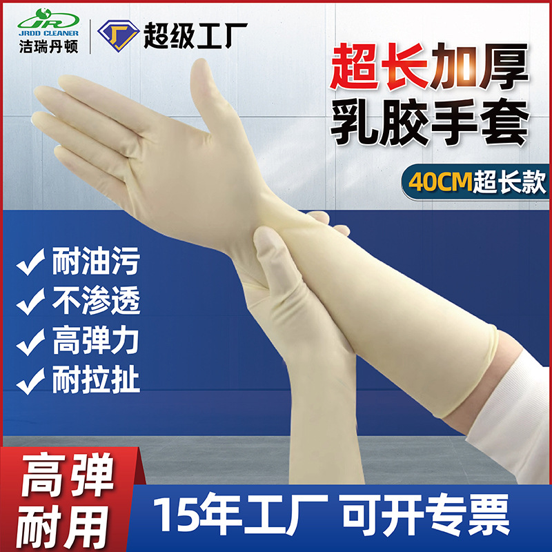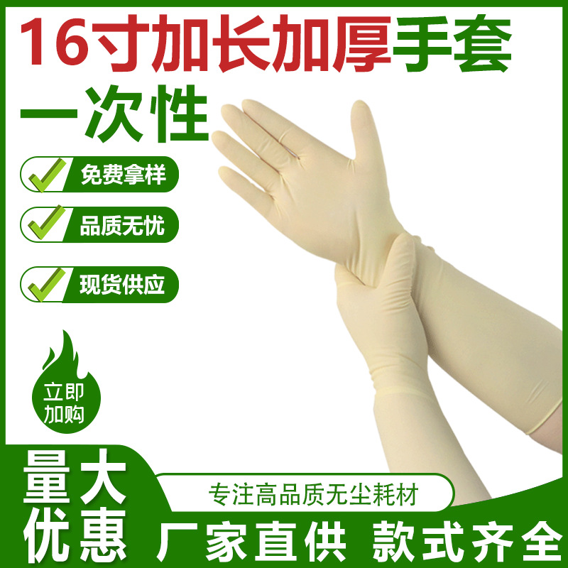 现货一次性16寸加长加厚掌麻乳胶手套 实验室防护橡胶丁腈手套