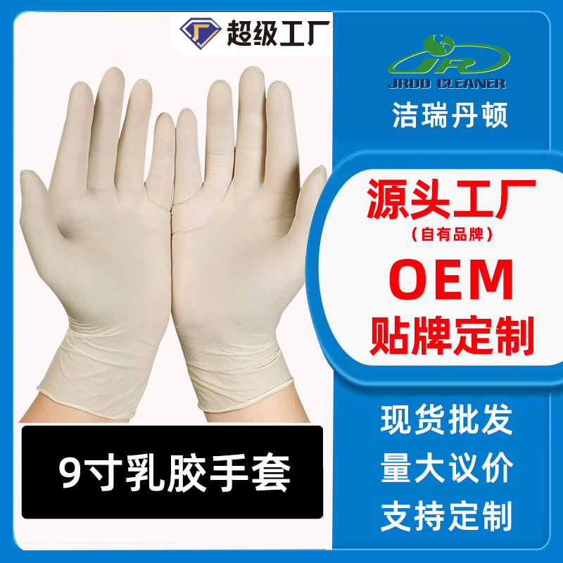 9inch ラテックス手袋工業用光沢のあるパウダーフリー浄化使い捨てラテックス手袋無塵室工場使用