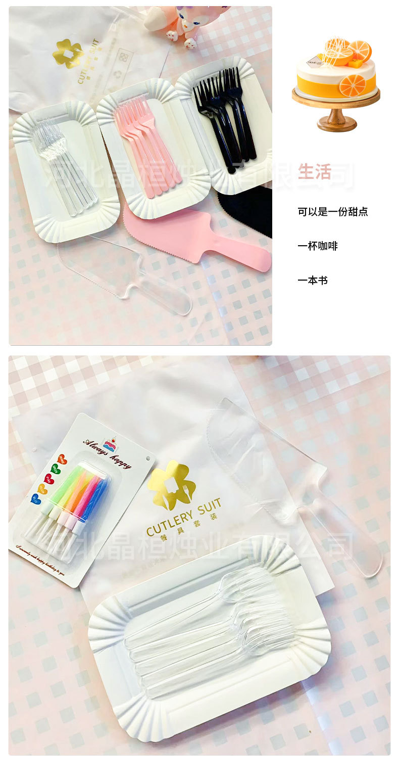 ケーキナイフフォーク皿セットケーキ店生日用品食器長方皿使い捨てケーキ食器卸売り