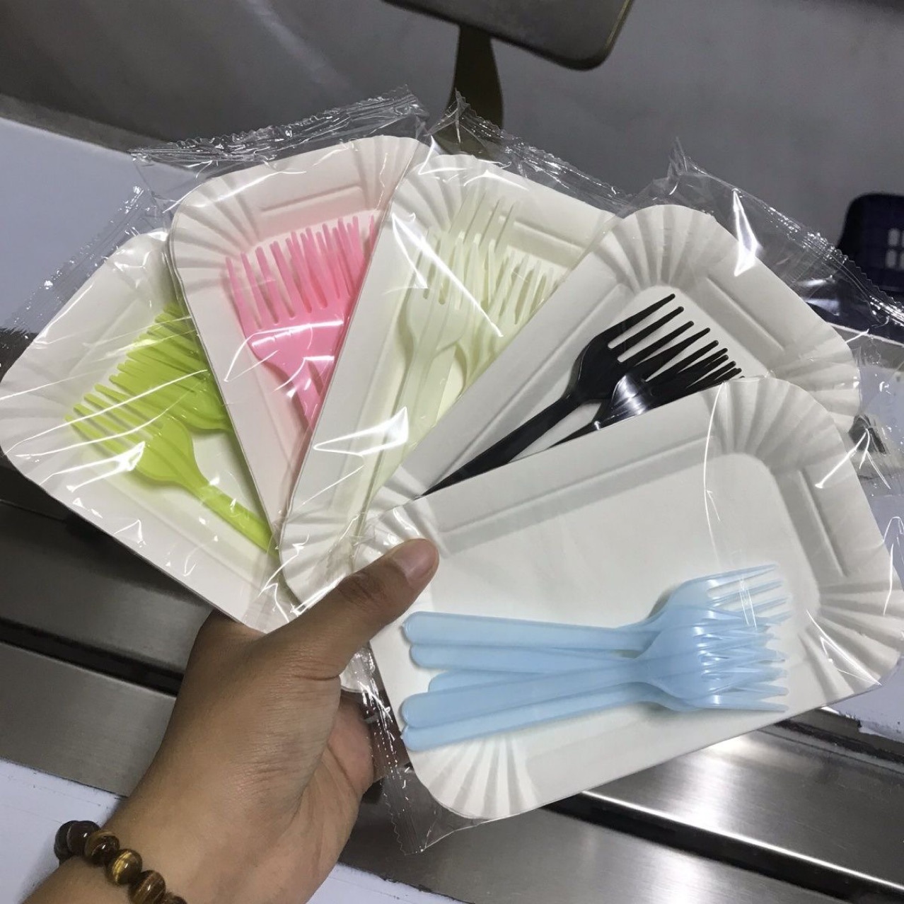 透明バッグカラー使い捨てナイフフォーク皿食器ケーキショップベーカリーパーティー専用卸売食器セット