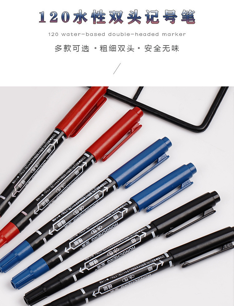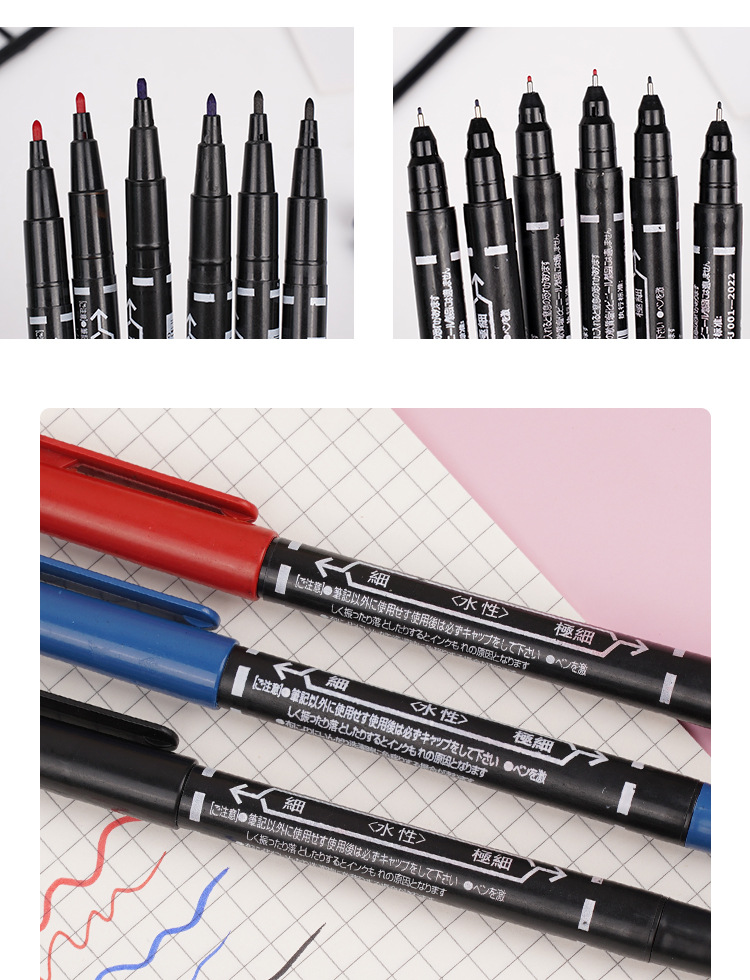 水性マーカーペン創意ダブルヘッド極細学生絵画フックライン水性ペン三色オプションメーカー直販卸売り