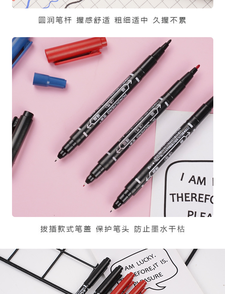 双头记号笔油性笔细头勾线笔美术用小学生防水油墨笔掉色黑笔防油