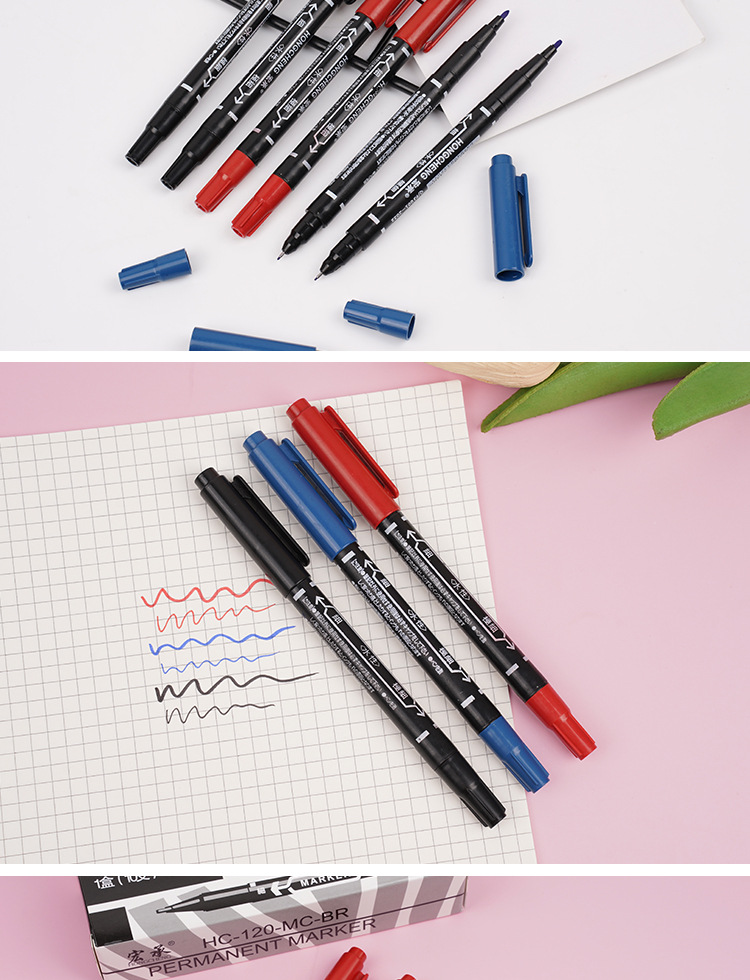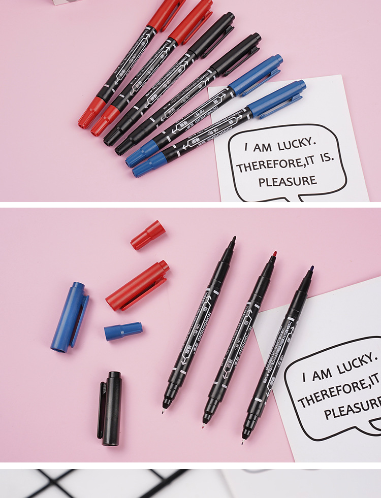 小さいダブルヘッドの油性マーカーペンの線のペンの黒色の青い赤い子供の美術の絵画の縁の物流のマークのペンの水性