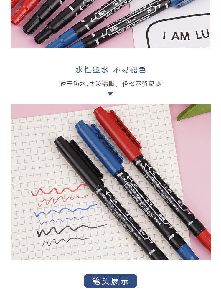 クロスボーダー小さなダブルヘッド油性ペンマーカー大容量细いヘッドスプリンクラーマーク速干防水美术マーカーペン