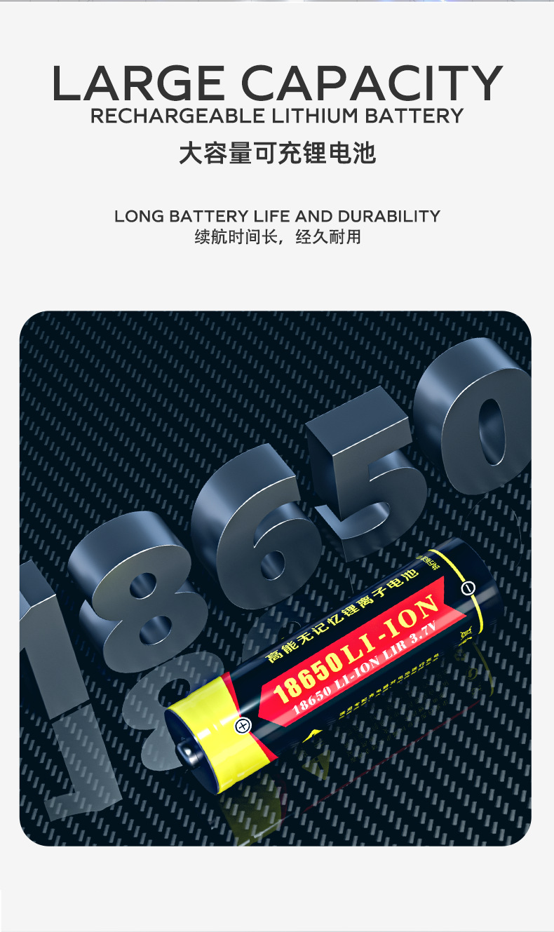 小野人懐中電灯電池18650リチウム電池3.7v充電2400ma 50000ma