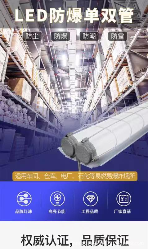 LED防爆灯防爆三防T8蛍光ランプカバー倉庫現場単双管防爆1.2mランプ