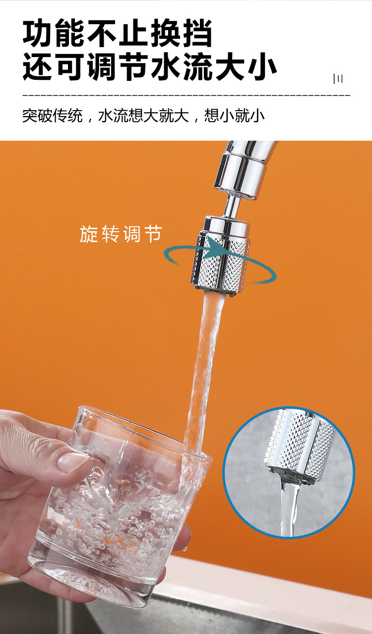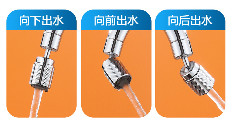 台所の蛇口は水のしぶきを防ぐ神器の自在回転を延長して水の増圧を調整します。