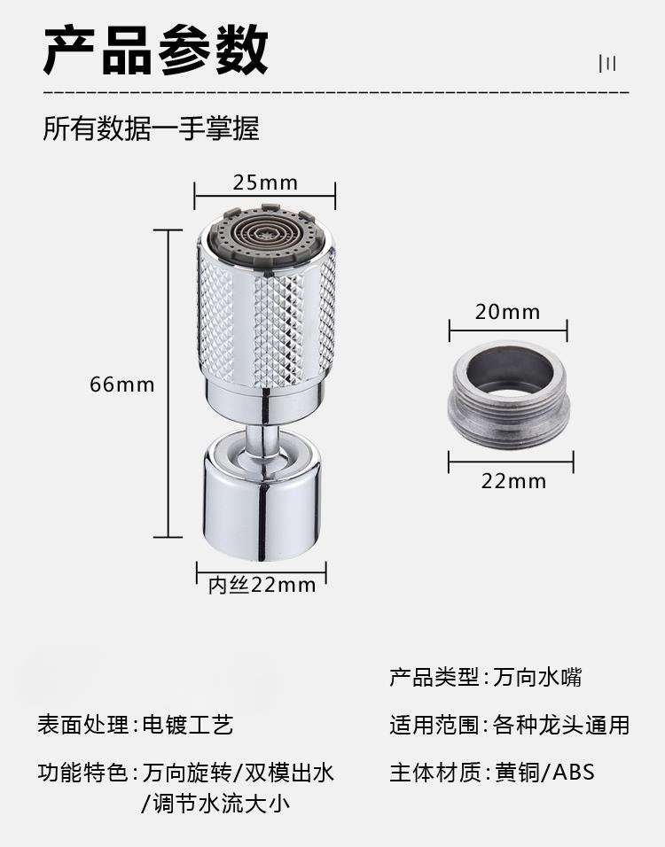 キッチン防滴蛇口大角デュアルモード水出口真鍮バブラーシャワーエクステンダーエクステンダー