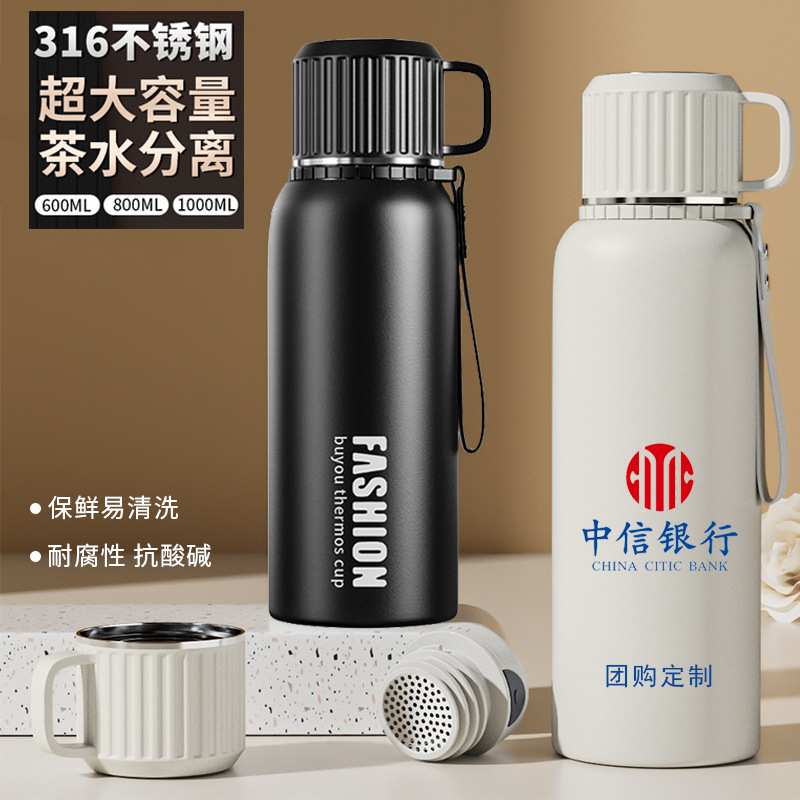 316 ステンレス鋼魔法瓶カップ男性用大容量屋外車載オールスチール魔法瓶ポット茶水分離カスタムロゴ