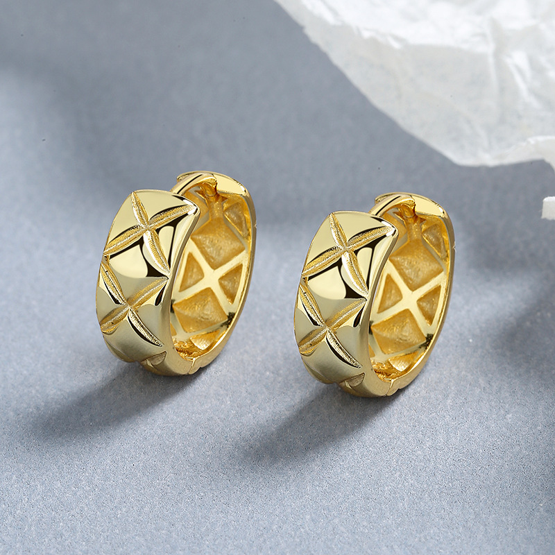 イヤリング韓国気質925純銀シンプル個性幾何学透かし彫りリングリング耳輪イヤリング耳飾り