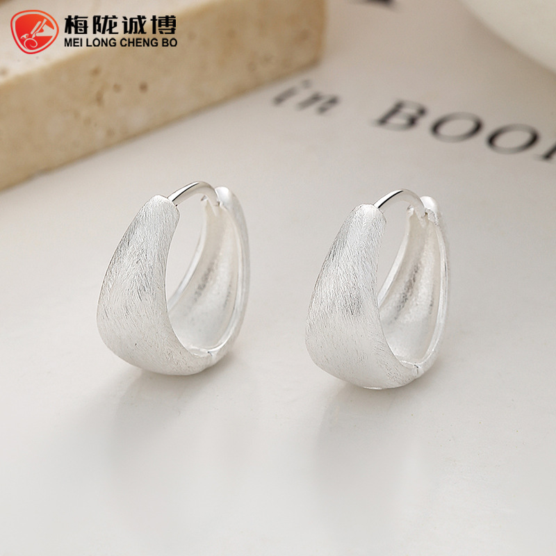 925純銀線引き艶消し銀イヤリング女性夏シンプルins百合潮耳輪冷淡風高級感耳飾り