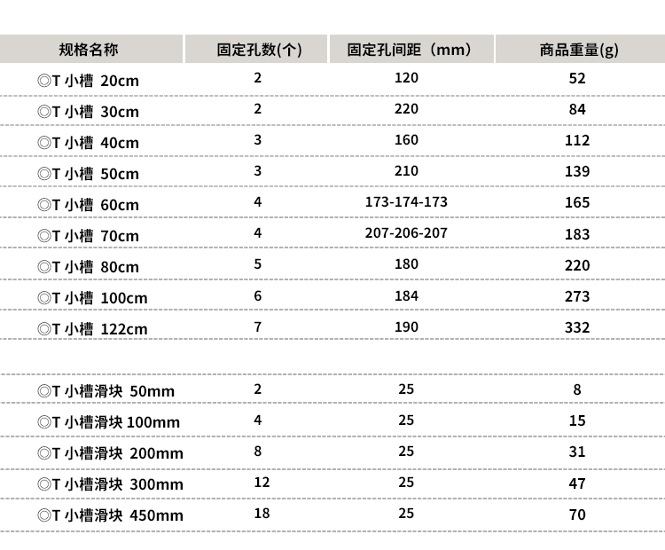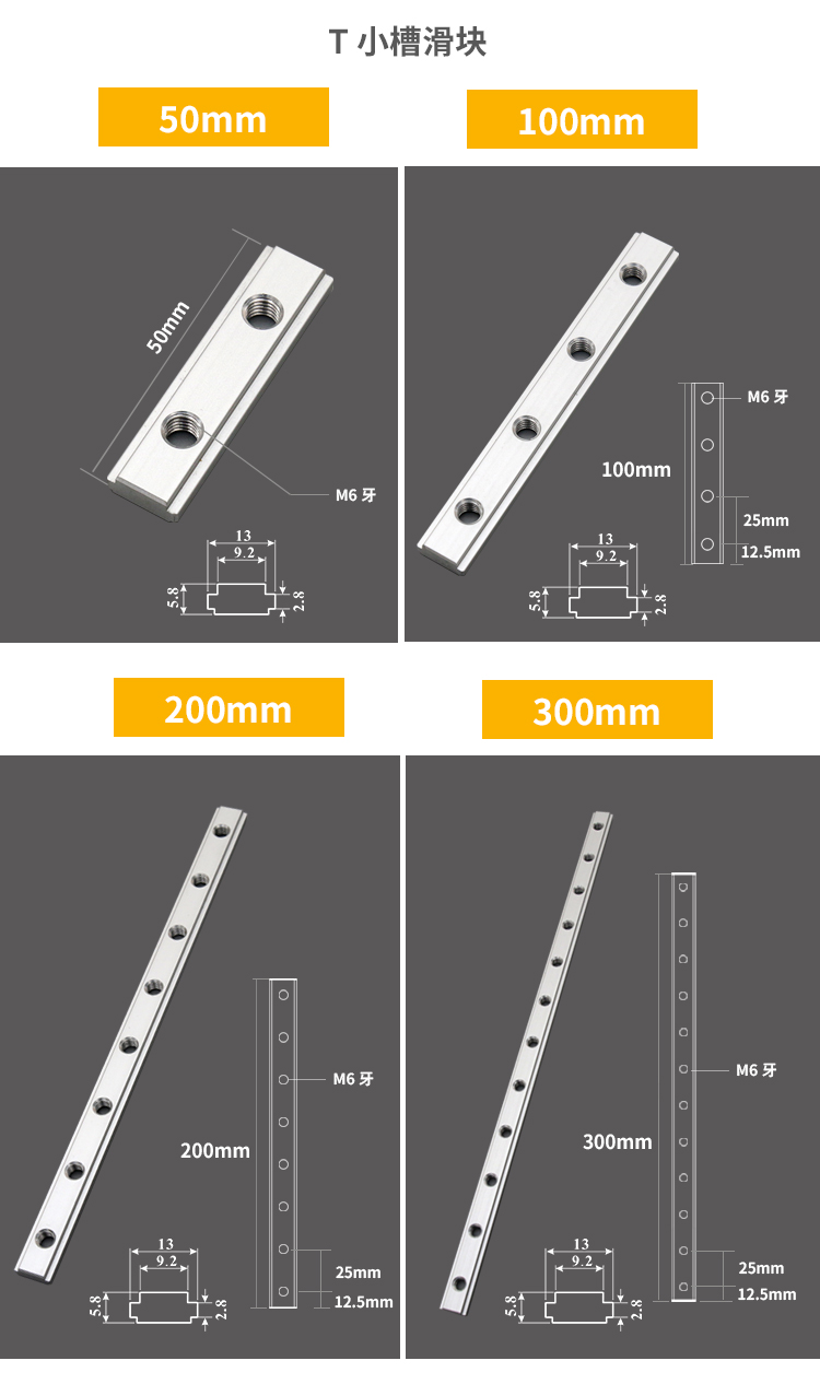 配合T螺丝专用小槽(M6或M8专用T螺丝)