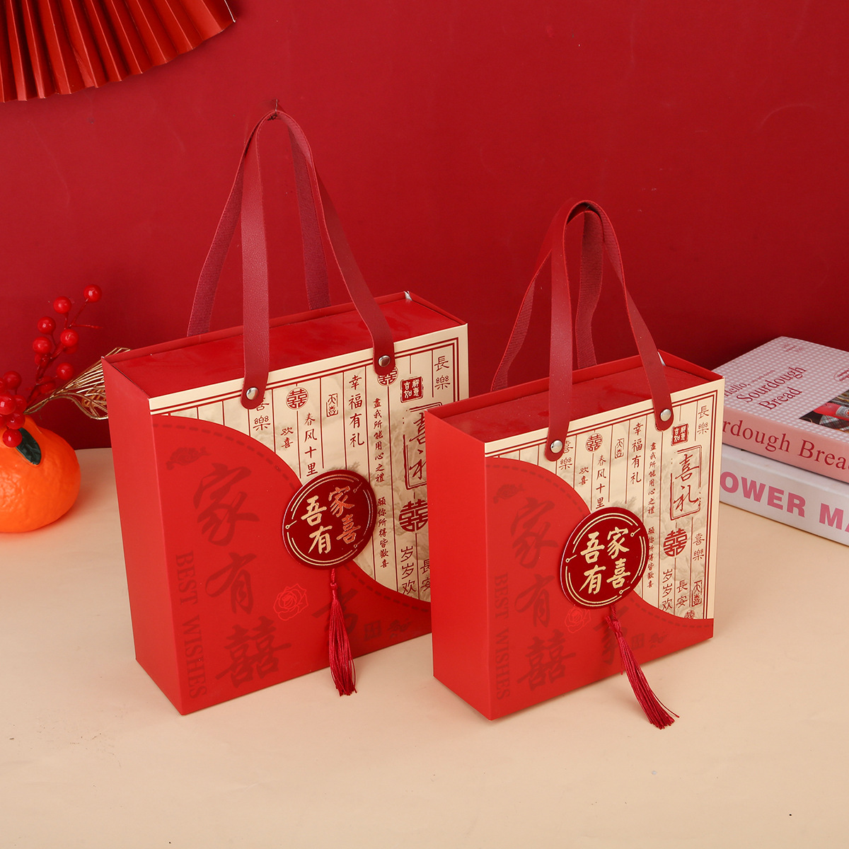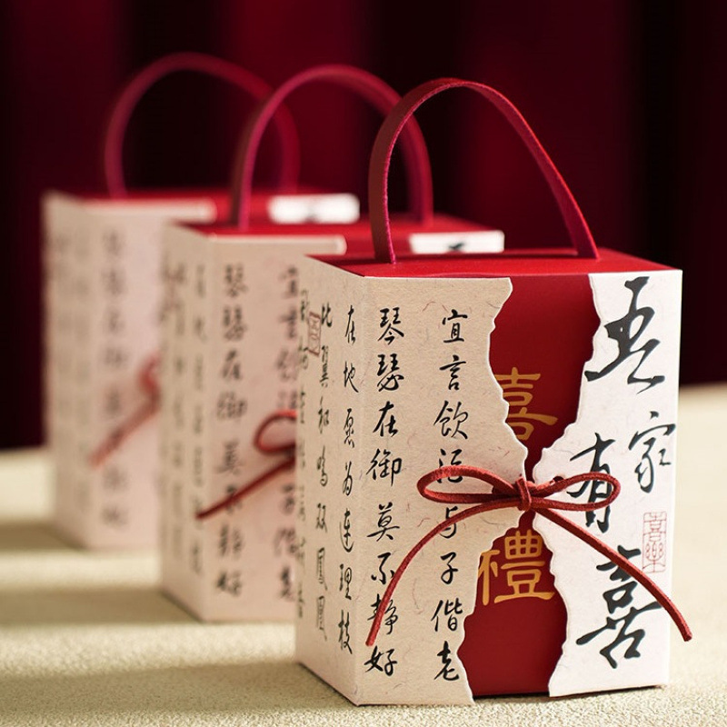 结婚专用喜糖盒子糖果盒双喜中式手提抽屉盒包装盒婚礼抽屉回礼盒