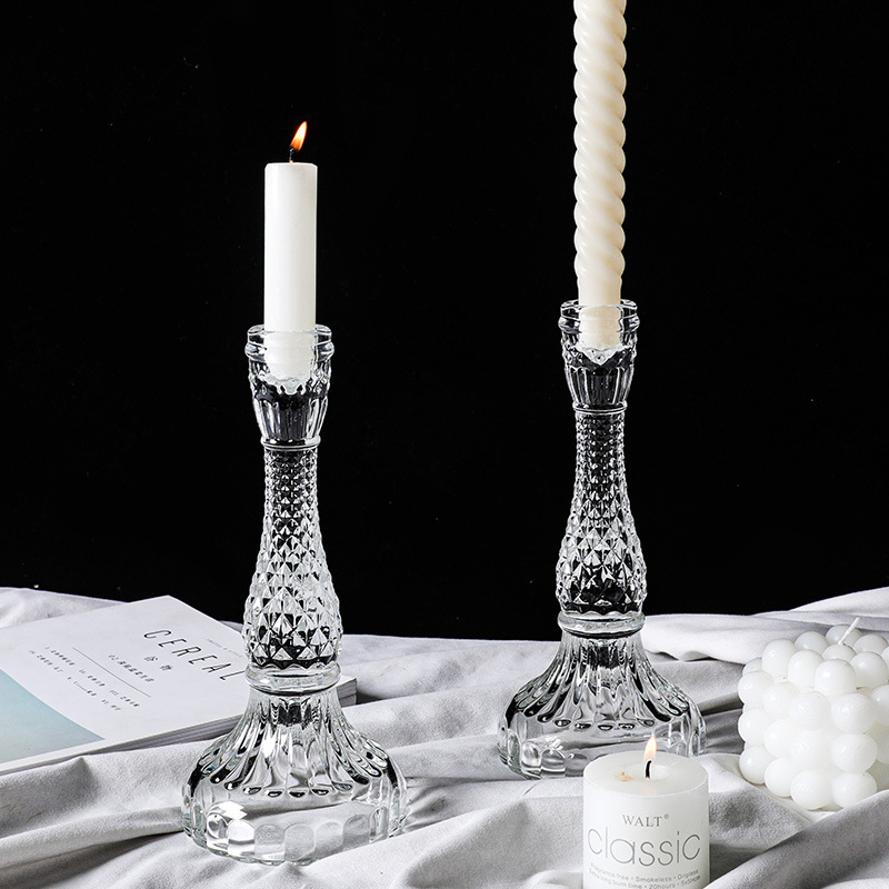 ヨーロッパ式シンプルinsガラス燭台家庭用棒ワックスベースロマンチックな食卓ろうそく台創造的な家庭装飾品