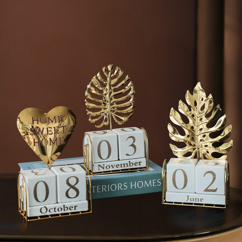 ヨーロッパのモダンな金属鉄の愛の木製カレンダー装飾品永久カレンダーホームルーム装飾装飾クラフト
